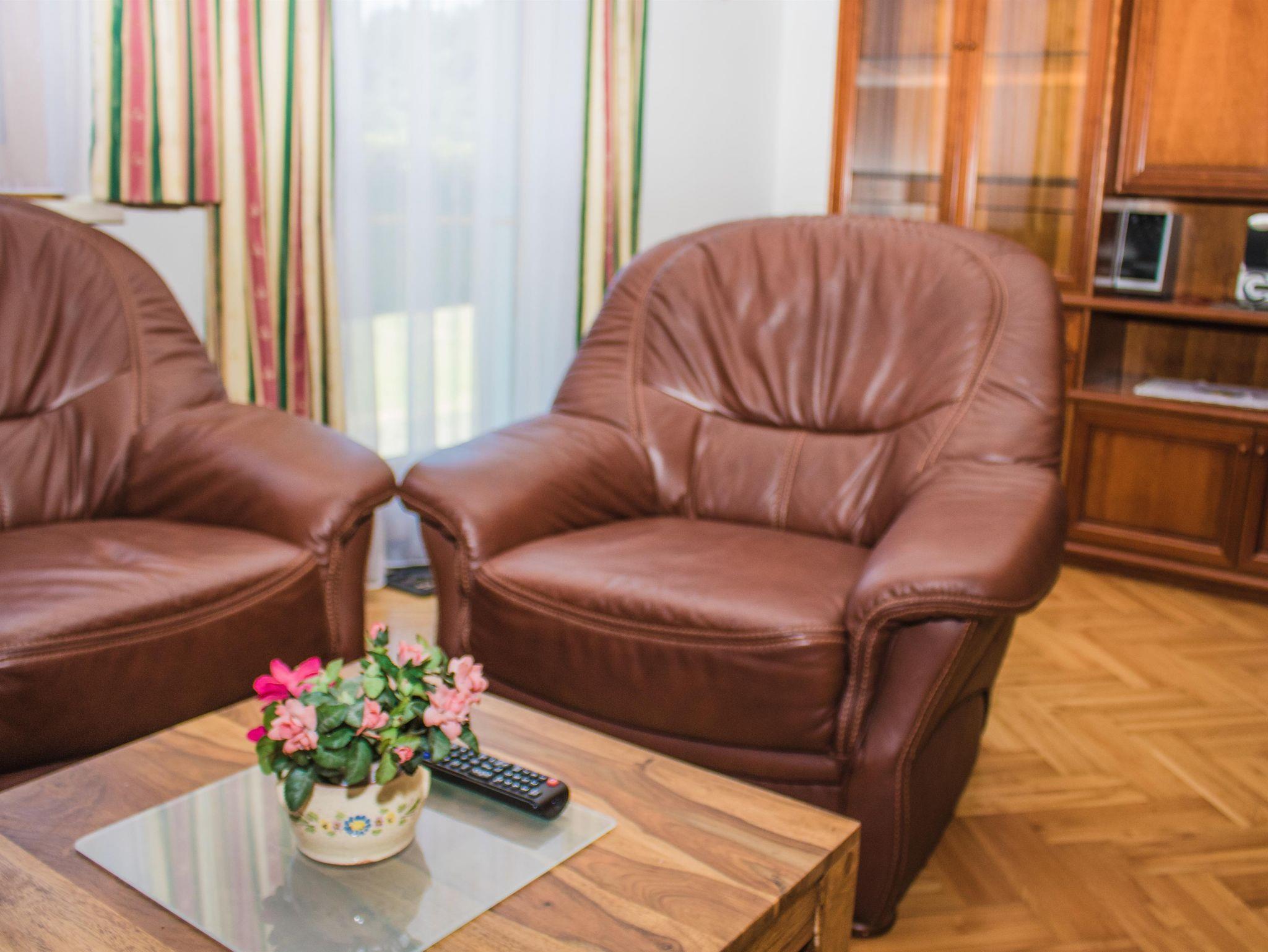 In unserem neuen Feriehaus Karin wohnen Sie in einem von zwei Appartements, für jeweils 8 Personen eingerichtet mit jeweils 3 Doppelzimmern, 2 Duschen, 2 WCs, einer voll ausgestatteten Küche, Sat-TV, kostenlosem Internetzugang und einem gemütlichen Wohnzimmer. Vom Balkon der Appartements erleben Sie eine herrliche Aussicht auf die Berge von Schladming-Dachstein, allen voran der mächtige Grimming.