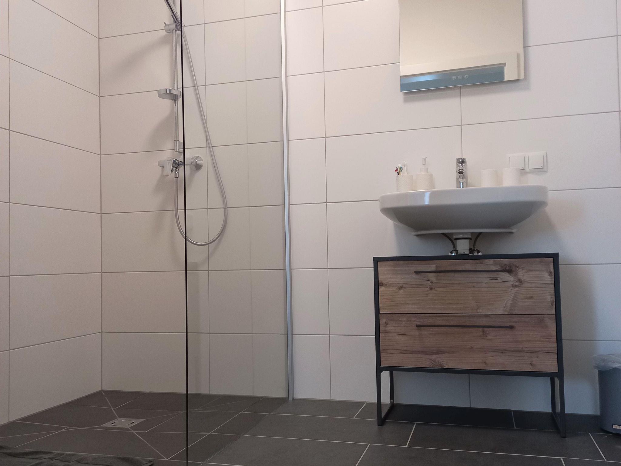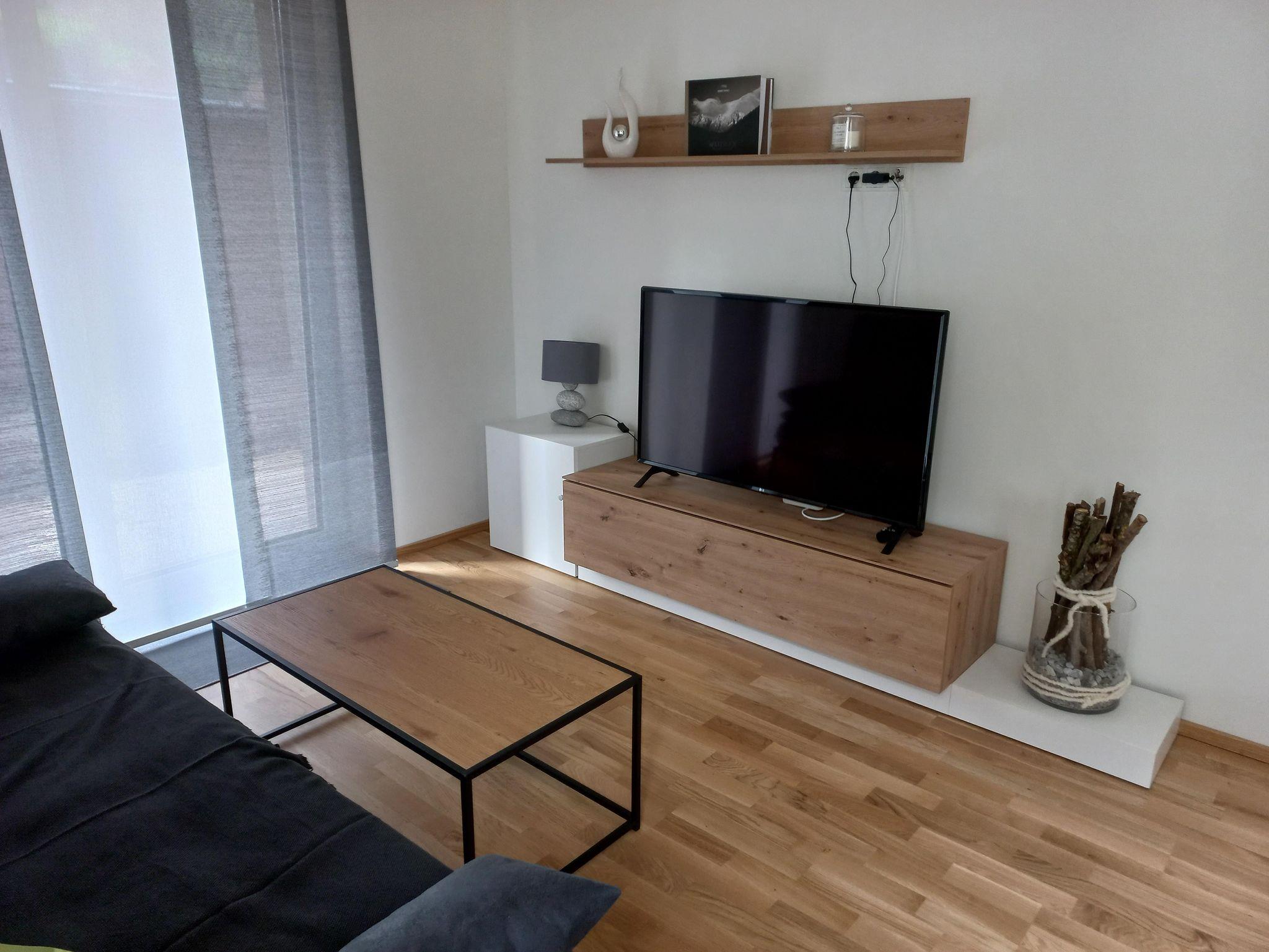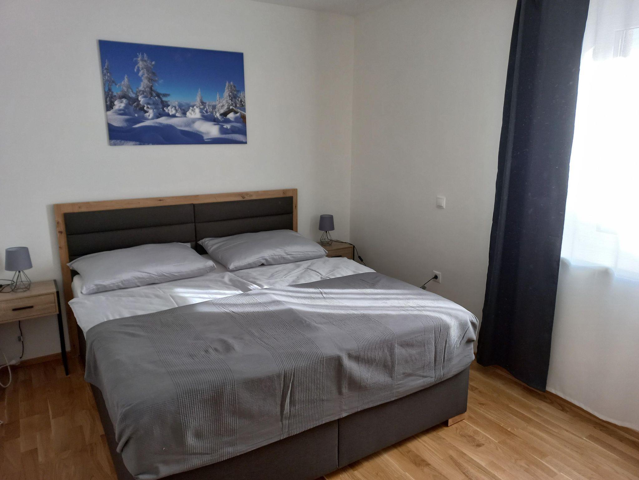 Unsere neue, barrierefreie Wohnung verfügt über 2 geräumige Schlafzimmer, einen Wohn-Essbereich mit vollausgestatteter Küche, Badezimmer mit Dusche und separatem WC. Weiters bieten wir gratis WLAN im gesamten Appartement (Homeoffice geeignet) sowie 2 kostenlose Parkplätze (1x Carport, 1x Parkplatz) vor dem Haus.