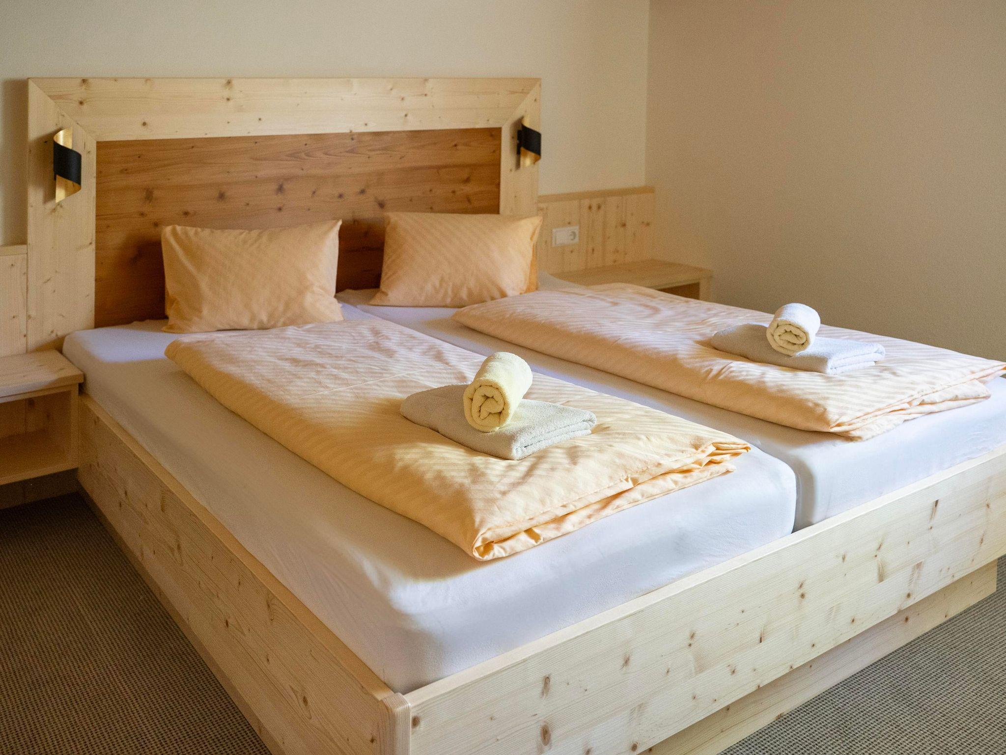 Gemütlich wohnen in Appartements für 2-8 Personen, mit bis zu 3 Schlafzimmern, teilweise mit Kachelofen und Balkon mit Bergblick, gratis Wlan. Im Winter 3x wöchtentlich Saunaabend im Haus. Die zentrale, aber doch ruhige Lage, garantiert eine sehr gute Erreichbarkeit der umliegenden Skigebiete und ist gleichzeitig perfekter Start für Ihre Wanderungen in den Bergen. Unsere Produkte aus der eigenen Landwirtschaft, wie frische Milch, Eier und vieles mehr liefern wir gerne ins Haus.