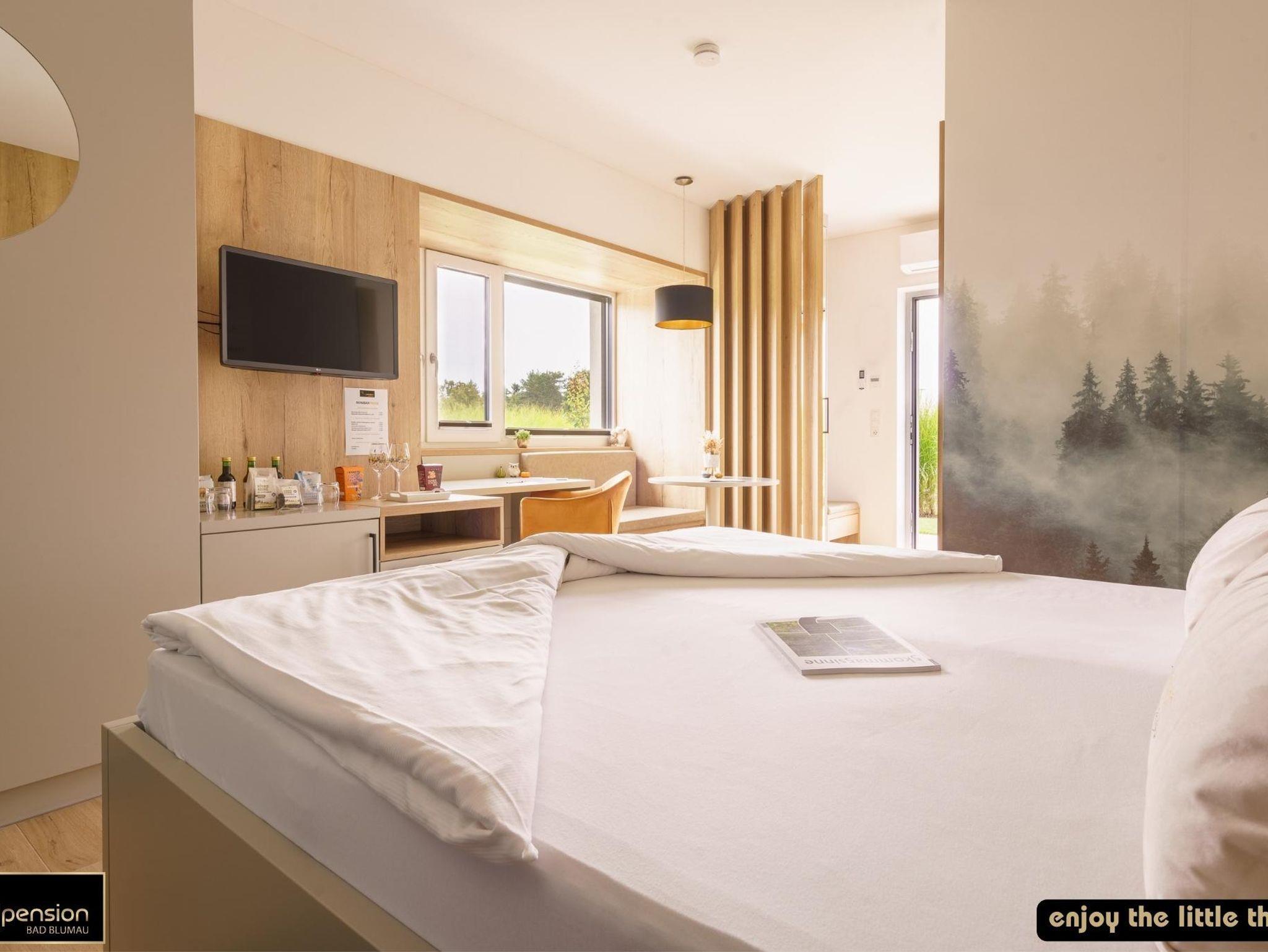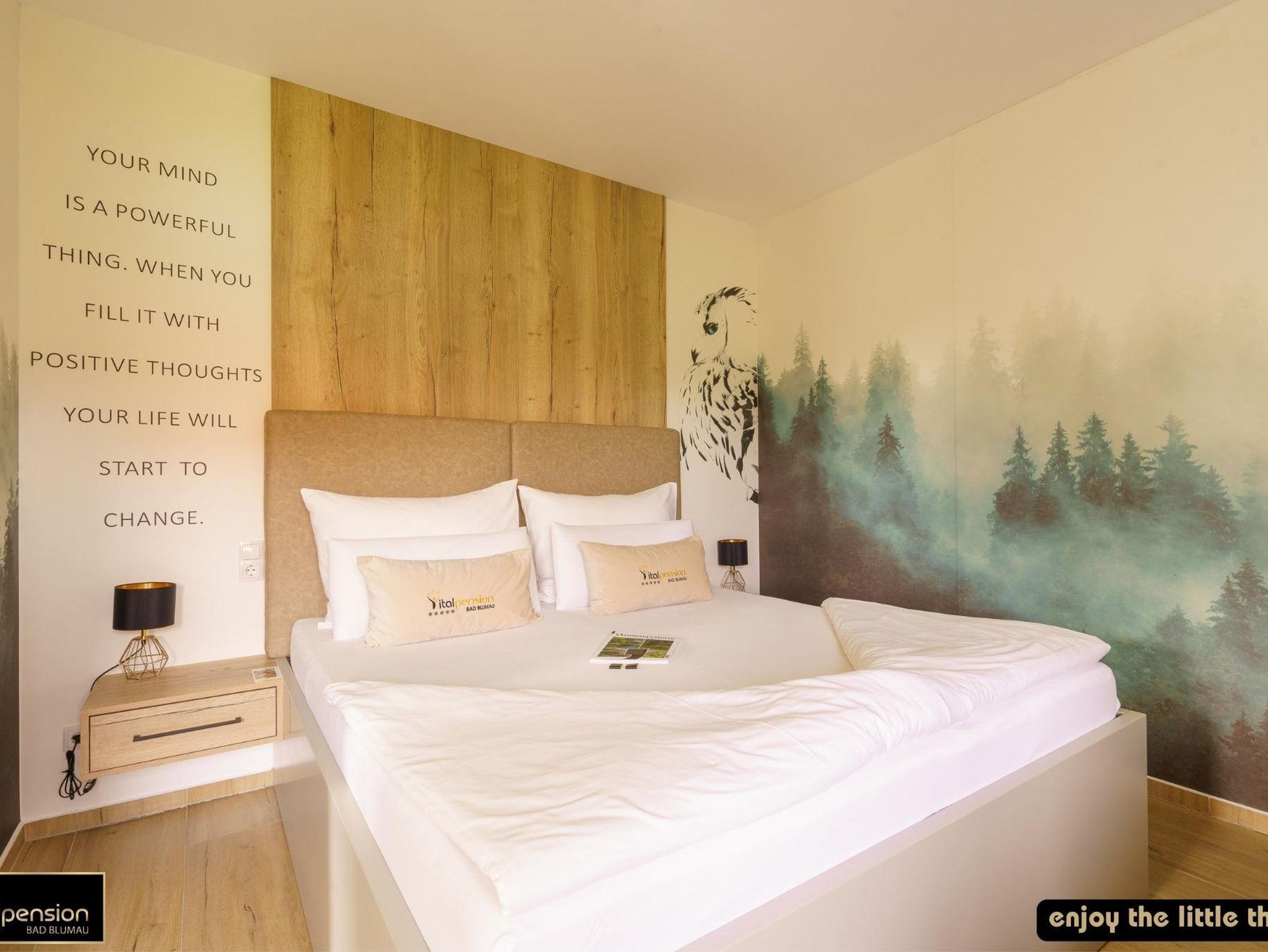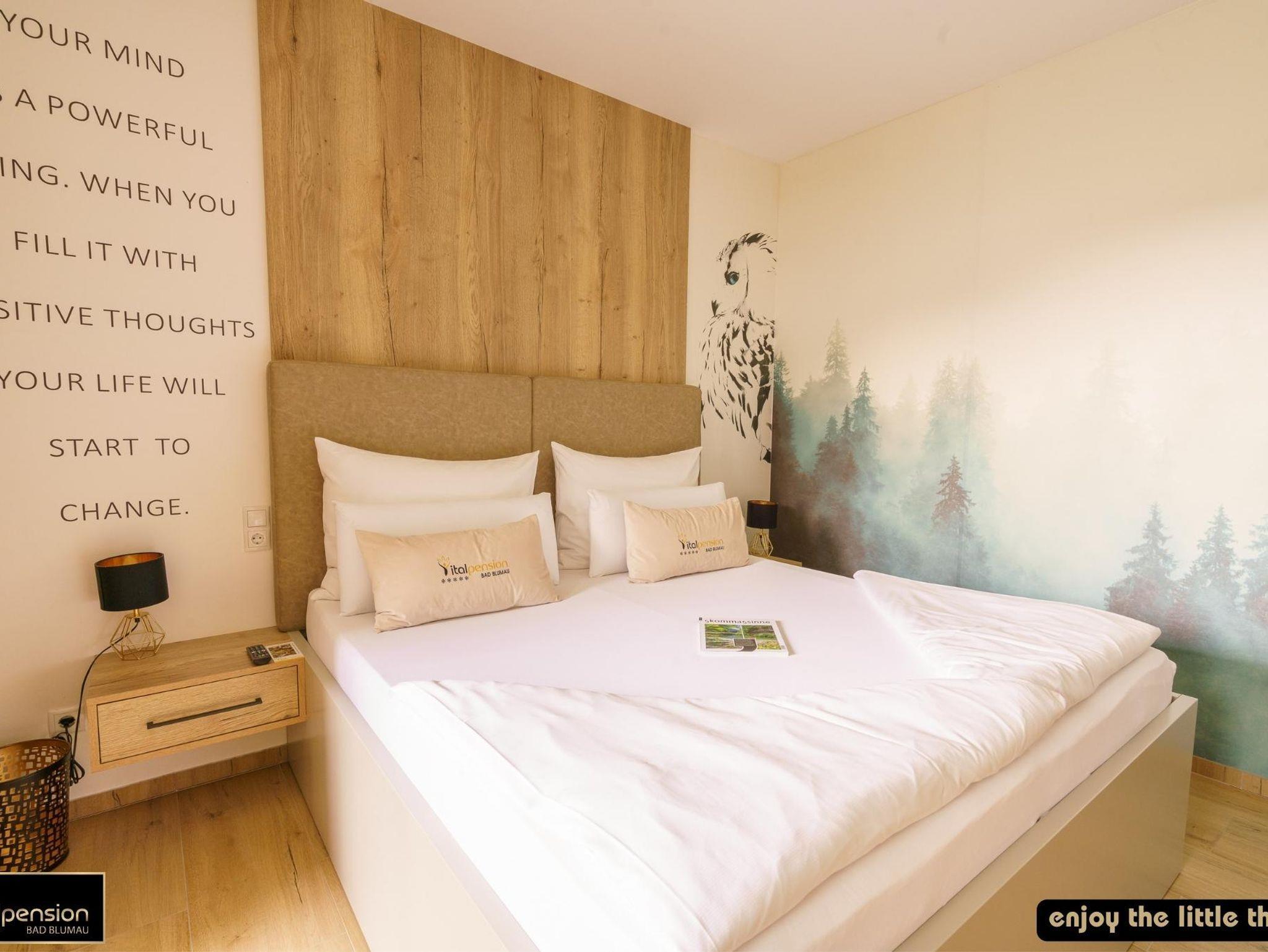 Unsere Doppelzimmer, die auch als Einzelzimmer benütztwerden können, bieten Ihnen all das, was Sie für einen erholsmen und entspannenden Urlaub in der Natur brauchen.