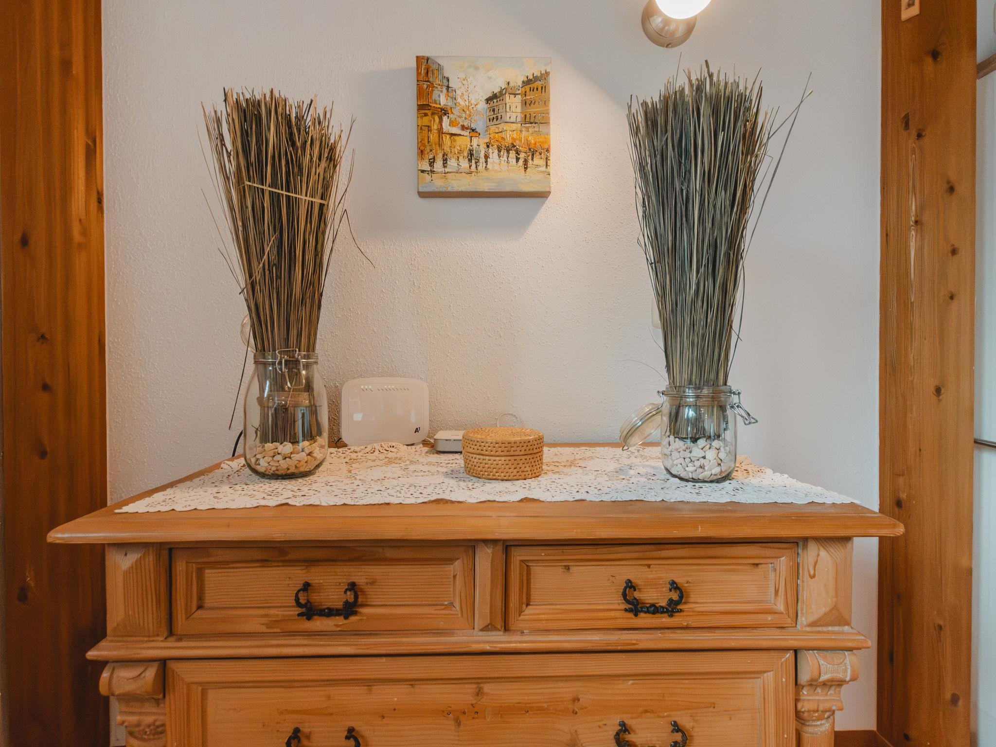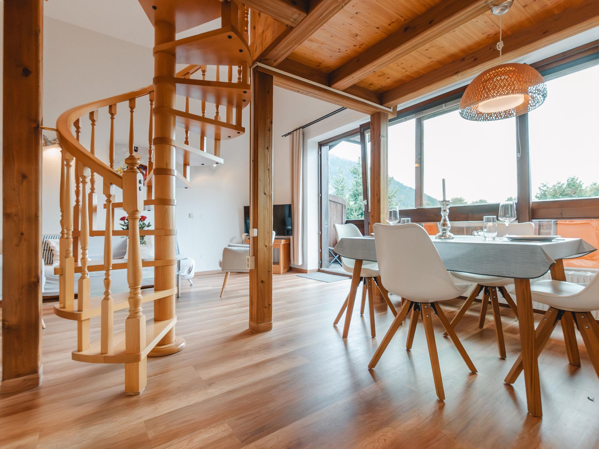 "Anna-Katharina", 1-Zimmer-Wohnung 53 m2 im 2. Stock. Objekt geeignet für 2 Erwachsene + 2 Kinder. Geräumig und hell, sehr modern und gemütlich eingerichtet: Eingang. Offene Galerie 17 m2 mit 1 Doppelbett. Wohn-/Esszimmer 36 m2 mit Panoramafenster mit 1 Doppeldiwanbett, Esstisch und Kabel-TV (Flachbildschirm). Ausgang zum Balkon. Offene Küche (Backofen, Geschirrspüler, 4 Glaskeramikplatten, Toaster, Wasserkocher, Mikrowelle, elektrische Kaffeemaschine). Dusche, sep. WC. Holzdielenboden. Balkon 10 m2. Balkonmöbel. Sehr schöne Panoramasicht auf die Berge. Zur Verfügung: Haartrockner. Internet (WLAN, gratis). Parkplatz Nr. 7. Bitte beachten: geeignet für Familien. Nichtraucher-Unterkunft. Rauchmelder, kein Fahrstuhl. Die elektische Kaffeemaschine ist eine Cafissimo. 2 Kinder bis 15 Jahren auf Anfrage möglich. Anstelle eines abgeschlossenen Schlafzimmers befinden sich manche Schlafplätze in einem offenen Bereich (Galerie, Nische etc.). 50402-000674-2020