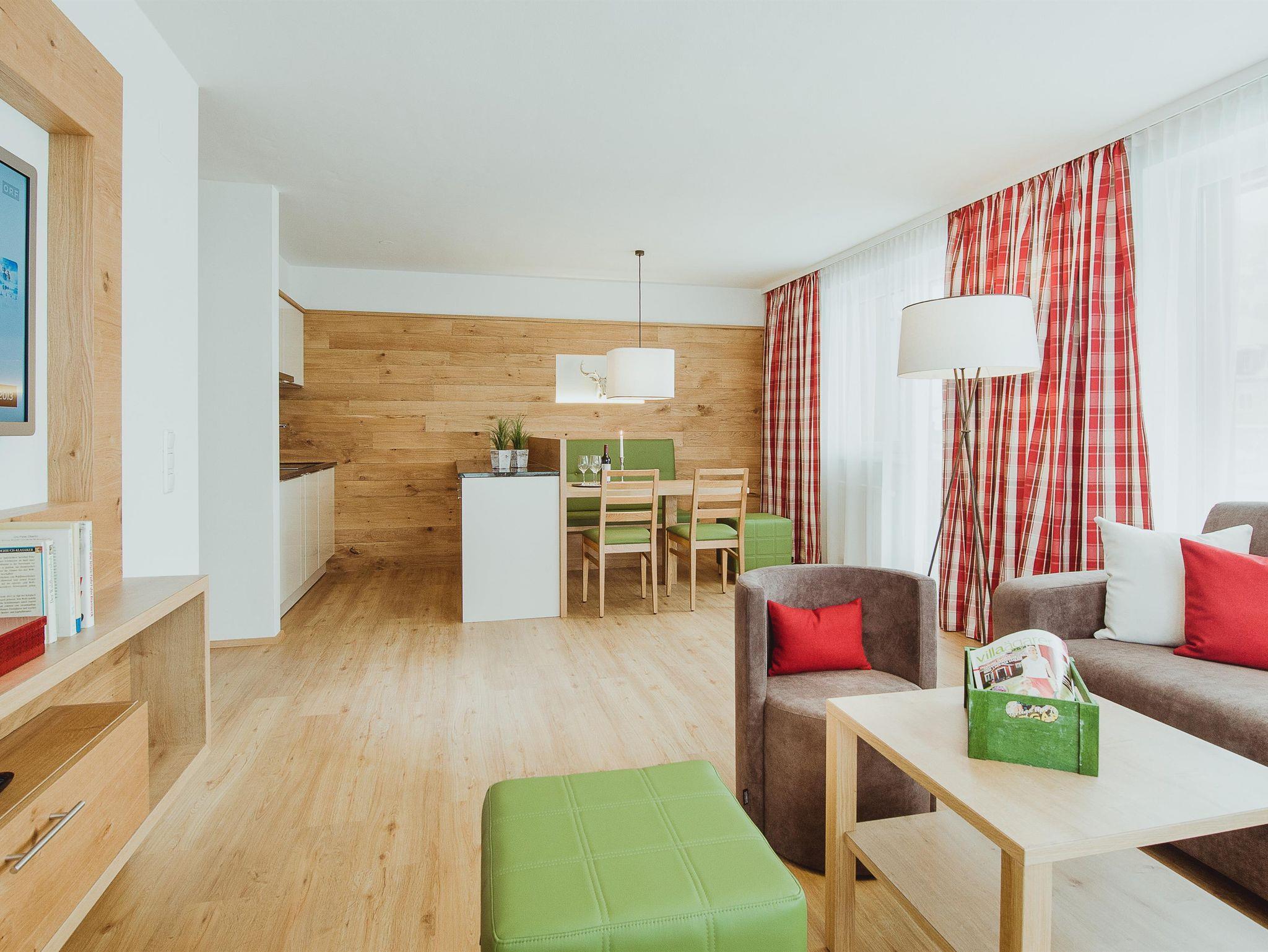 Nach einem erlebnisreichen Skitag auf den Pisten des Gasteinertals entspannen Sie in den großzügigen Wohnbereichen mit integrierter Küche. Ein Flachbild-TV in allen Schlafzimmern bietet den nötigen Komfort. Außerdem verfügen die Appartements über einen Raum zur Skiaufbewahrung, sowie einen Balkon oder eine Terrasse.