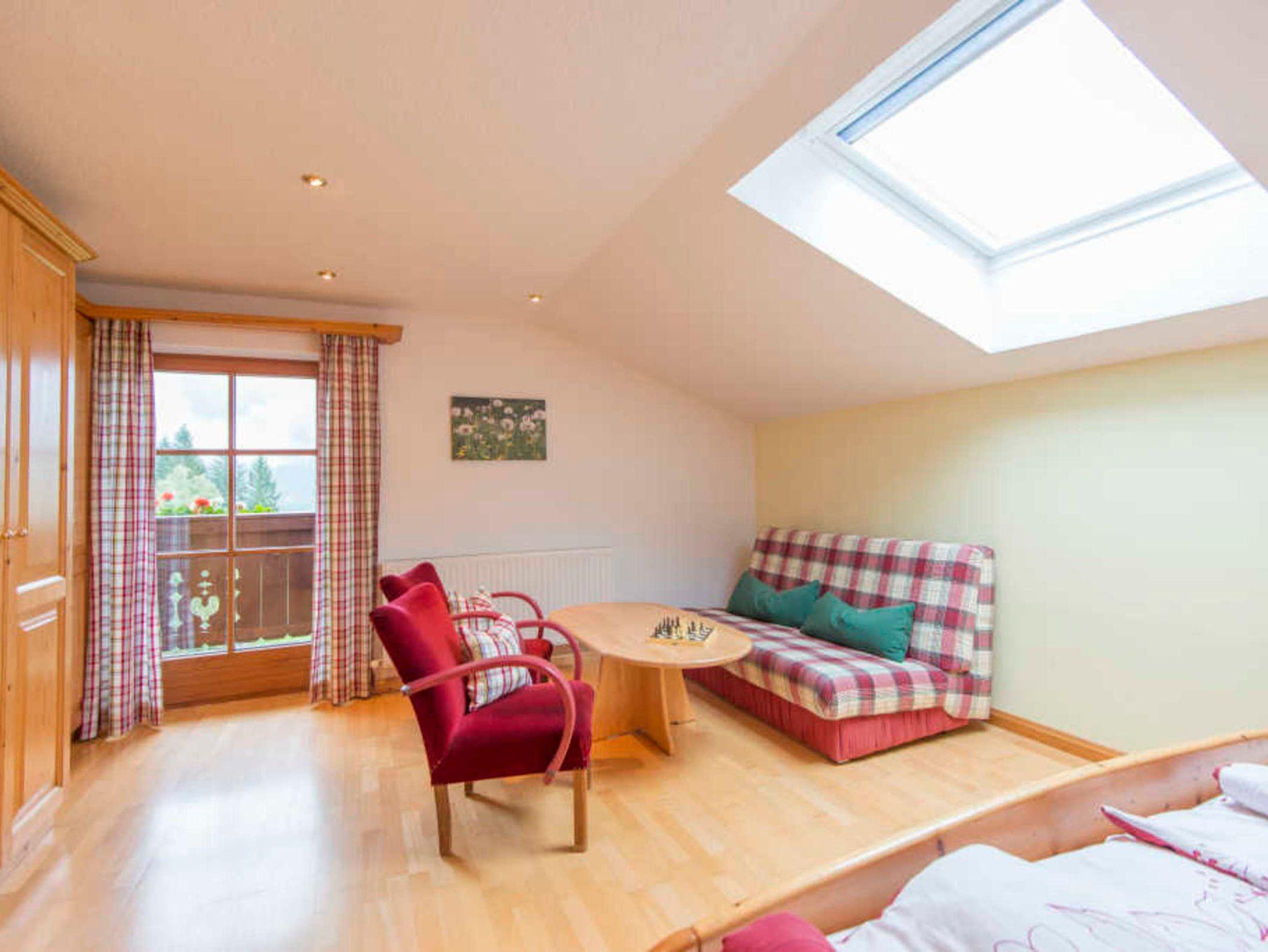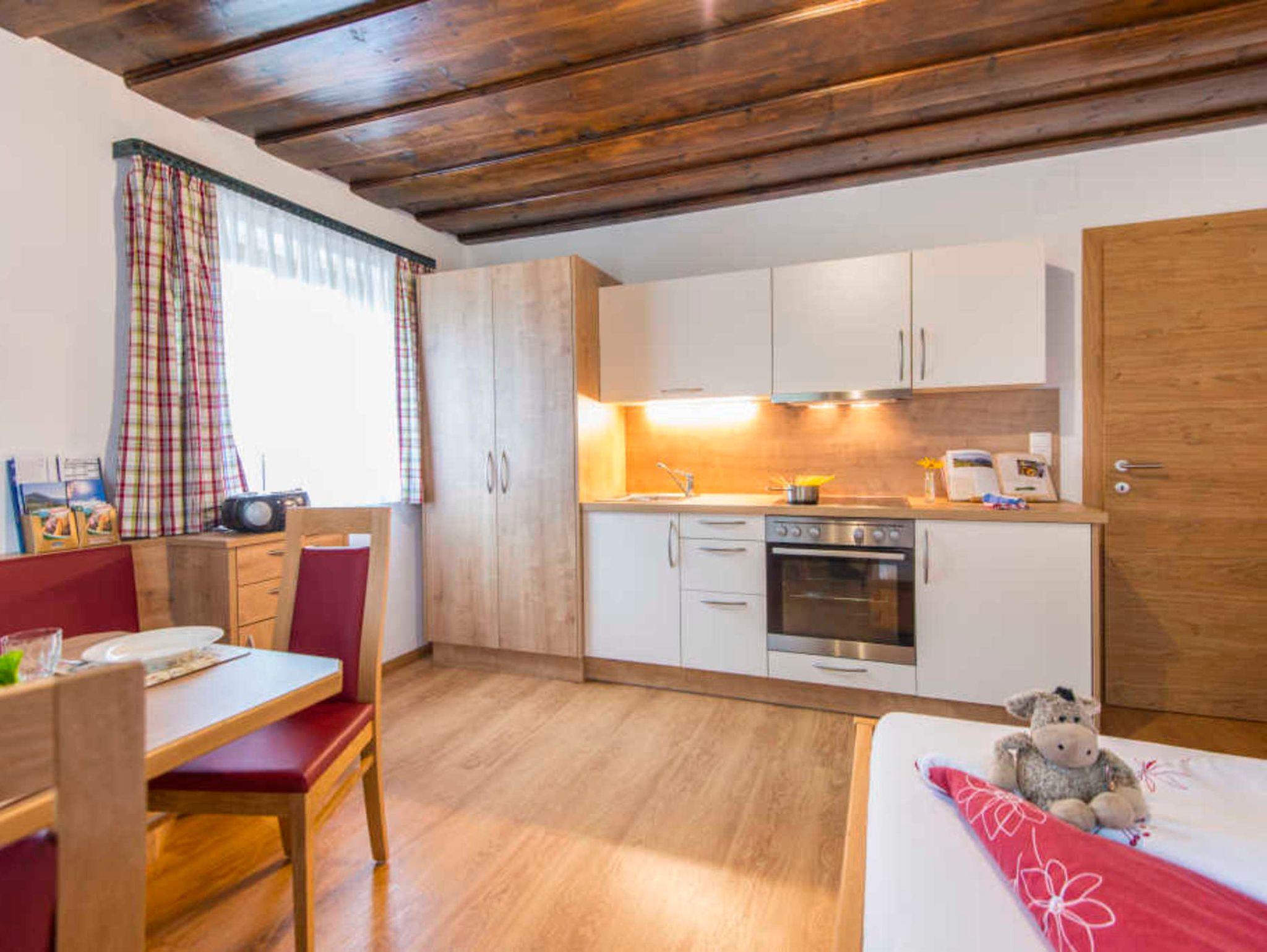 Diese Wohnung mit Balkon für 4-6 Personen mit 58 m² verfügt über zwei Schlafzimmer mit Doppelbett, einen Vorraum mit Garderobe, einem Bad mit Dusche/WC sowie über eine gut ausgestattete Küche mit gemütlicher Sitzecke. Die Küche ist mit Geschirrspüler, Kühlschrank mit Gefrierschrank, E-Herd mit Backofen, Ceran-Kochfeldern und Dunstabzug, Mikrowelle, Wasserkocher, Kaffeemaschine, Stabmixer... ausgestattet. Kochutensilien und Geschirr ist vorhanden sowie ein CD-Player mit Radio und USB-Anschluss. Bettwäsche, Hand- und Badetücher sind im Preis inkludiert. Gratis WLAN. Kleinkindausstattung auf Anfrage. Frühstückskorb mit hofeigenen Produkten gegen Aufpreis möglich.