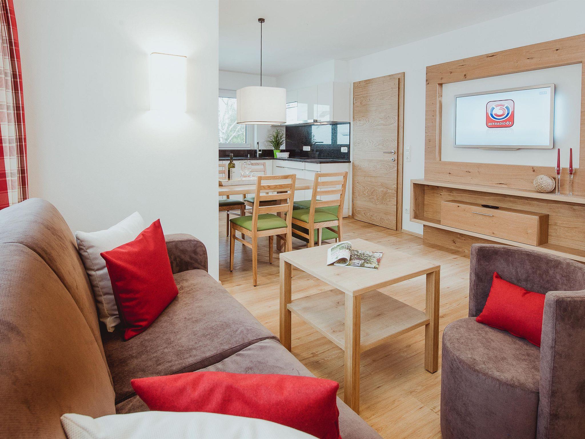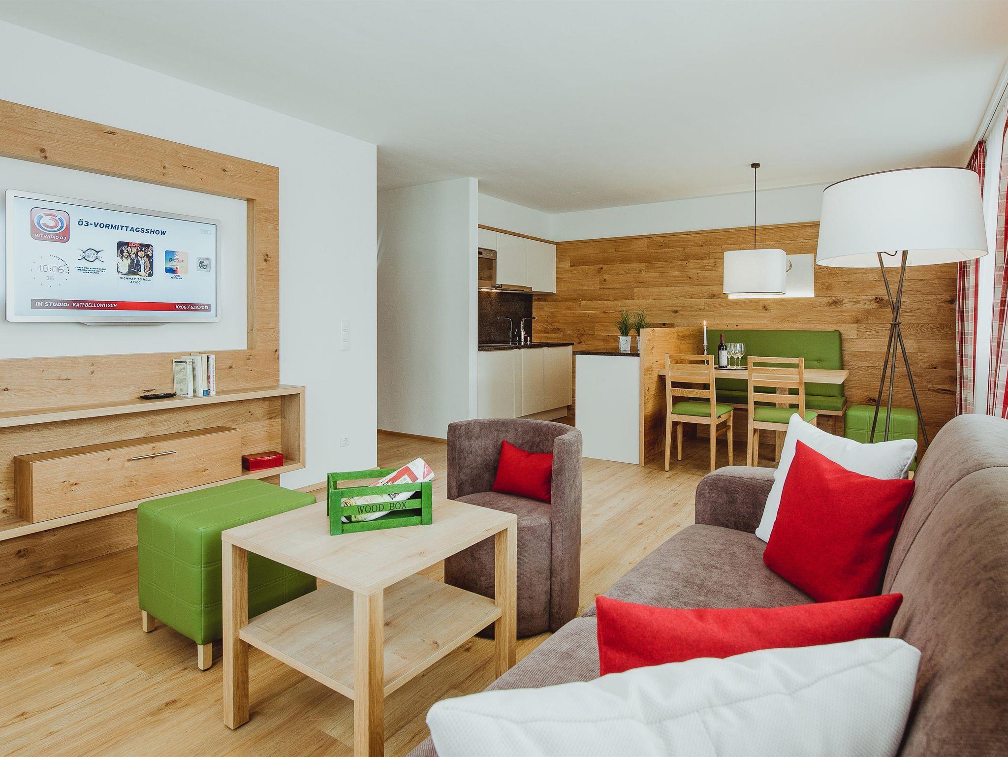 Nach einem erlebnisreichen Skitag auf den Pisten des Gasteinertals entspannen Sie in den großzügigen Wohnbereichen mit integrierter Küche. Ein Flachbild-TV in allen Schlafzimmern bietet den nötigen Komfort. Außerdem verfügen die Appartements über einen Raum zur Skiaufbewahrung, sowie einen Balkon oder eine Terrasse.