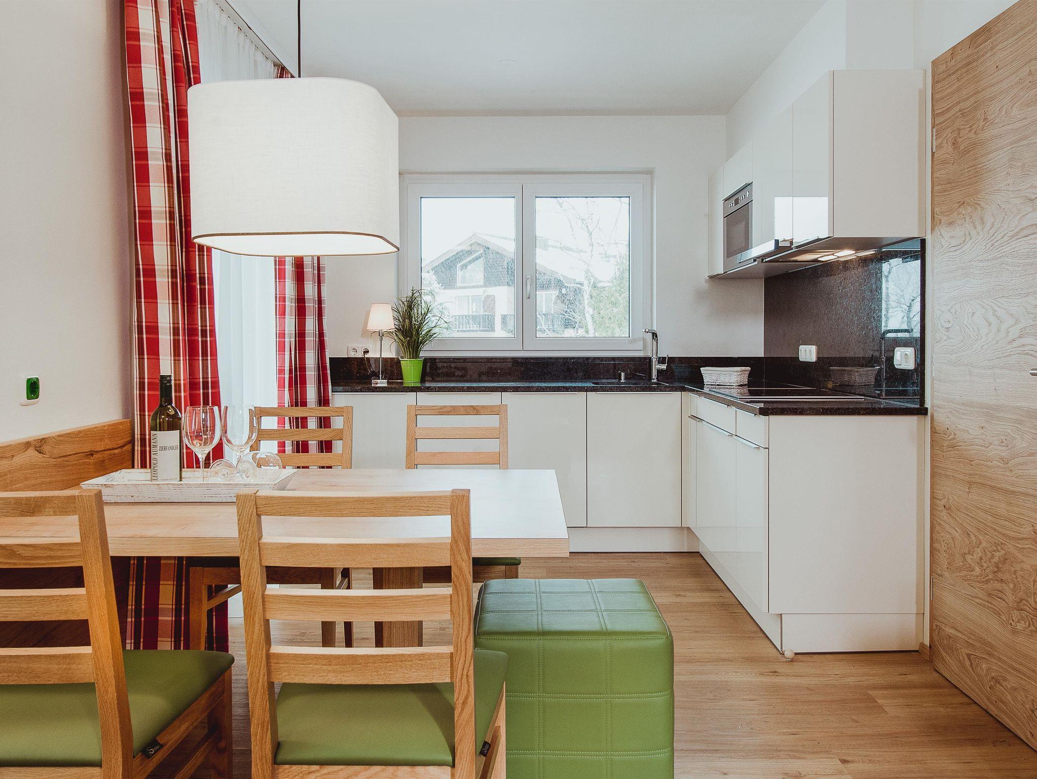 Appartement Enzian | 4 Personen, 60 m² . Offener Wohn-, Küche- & Essbereich, Wohnbereich mit Flatscreen Kabel TV, Sitzgruppe, Voll ausgestattete Küche, 2 getrennte Schlafzimmer jeweils mit Flatscreen Kabel TV,Kostenloser WLAN-Internetzugang, 2 Bäder (Haarfön, Handtuchheizung), Ski- und Schuhraum, 1 Parkplatz, Kleiderschrank mit Safe