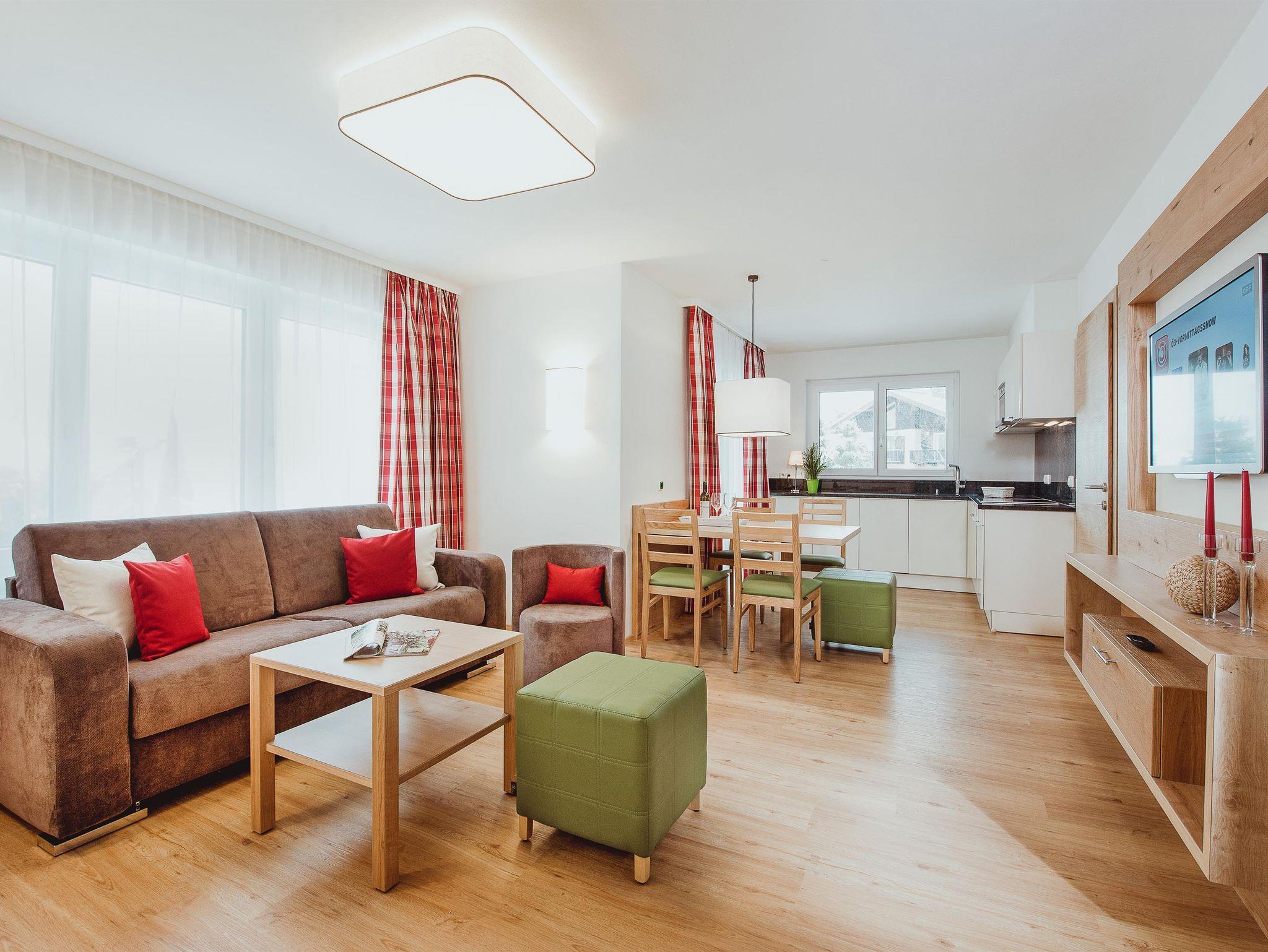 Nach einem erlebnisreichen Skitag auf den Pisten des Gasteinertals entspannen Sie in den großzügigen Wohnbereichen mit integrierter Küche. Ein Flachbild-TV in allen Schlafzimmern bietet den nötigen Komfort. Außerdem verfügen die Appartements über einen Raum zur Skiaufbewahrung, sowie einen Balkon oder eine Terrasse.