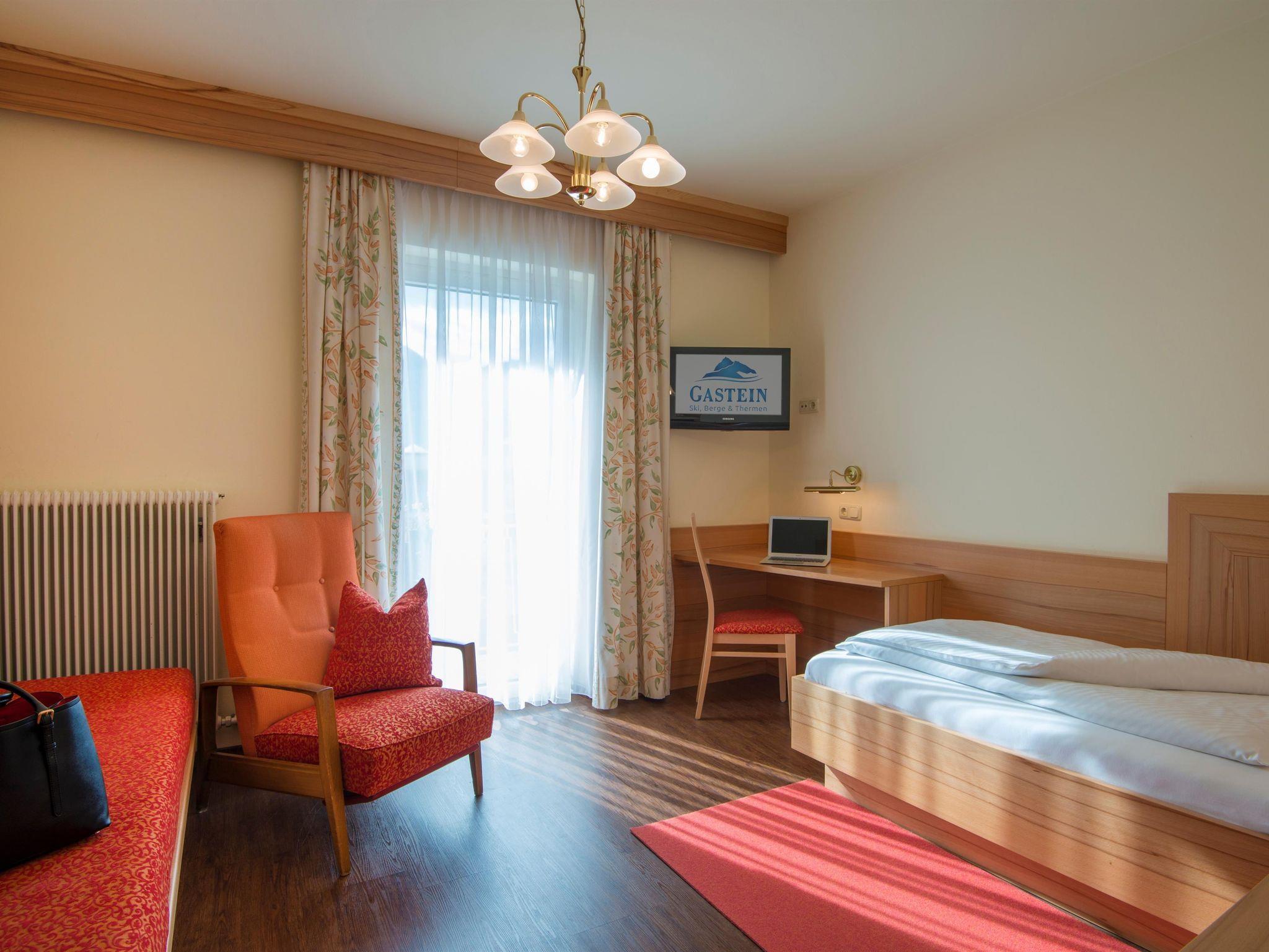 Unser Basic Einzelzimmer ist ideal für Alleinreisende, die einen komfortablen Aufenthalt suchen. Es bietet ein gemütliches Einzelbett und ein eigenes Bad mit Dusche oder Badewanne. Genießen Sie die Aussicht auf die Berge oder nutzen Sie den Arbeitsbereich im Zimmer, um produktiv zu bleiben. Buchen Sie jetzt Ihr Basic Einzelzimmer und erleben Sie einen angenehmen Aufenthalt in Bad Hofgastein.