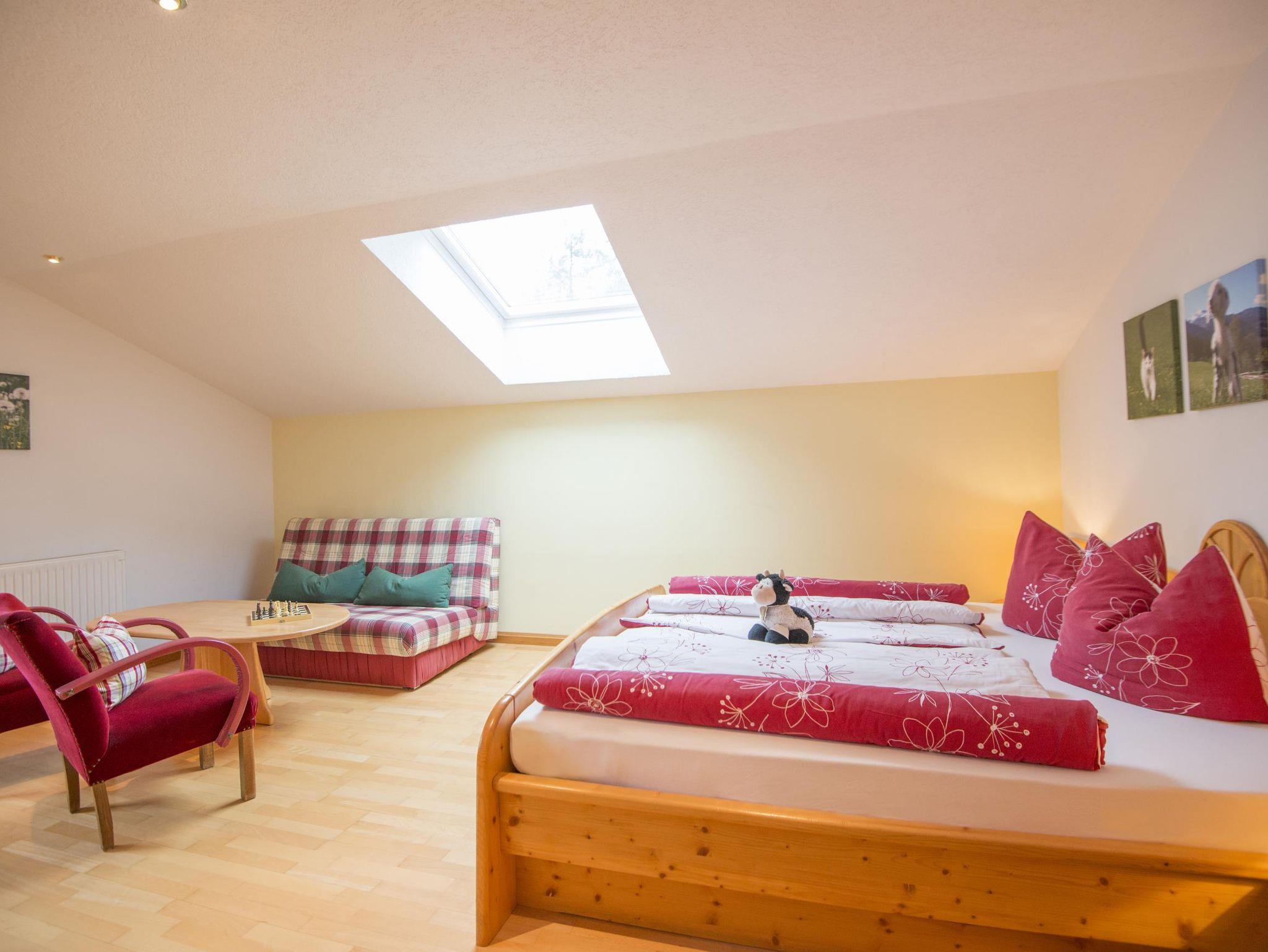 Urlaub in einer familiären Atmosphäre. Egal ob im Winterurlaub mit Kindern oder Sommerurlaub zu zweit – hier findet sich für jeden die passende Unterkunft. Die beiden großen Ferienwohnungen bestehen aus je zwei Schlafzimmern, einem Vorraum mit Garderobe, einem Badezimmer, sowie einer Wohnküche mit gemütlicher Sitzecke. In der Wohnküche finden Sie Geschirrspüler, Elektroherd mit Backofen sowie sämtliche benötigte Kochutensilien vor. Die kleinere Ferienwohnung für 2 Personen besteht aus einen Schlaf-/Wohnraum, einem Vorraum und einem Badezimmer und liegt im Erdgeschoß. Auf Anfrage stellen wir Ihnen gerne ein Frühstückskorb bereit. Dafür verwenden wir hausgemachte Produkte von unserem Bauernhof, wie Milch, Eier von unseren Hühnern, Tees aus dem Kräutergarten, selbstgemachte Marmelade sowie gesunde Säfte.