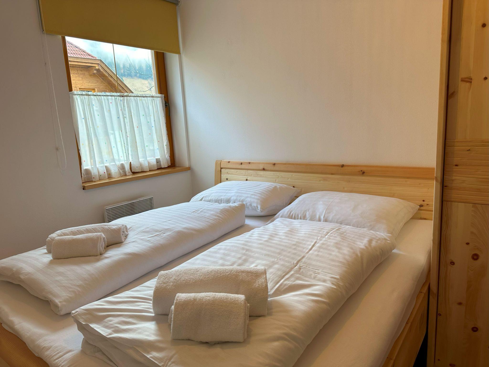 Die Innenausstattung lässt keine Wünsche offen. Genießen Sie erholsame Nächte im Schlafzimmer mit bequemem Doppelbett oder im zweiten Schlafzimmer, das mit zwei Etagenbetten für bis zu vier Personen bestens ausgestattet ist. Das großzügige Wohnzimmer mit Schlafsofa ist der perfekte Ort zum Entspannen nach einem Tag im Schnee. Die angrenzende Küchenzeile ist mit einem Geschirrspüler versehen, und für Ihr Wohlbefinden gibt es zwei Badezimmer – eines mit Dusche und WC und ein weiteres mit WC und Bidet.