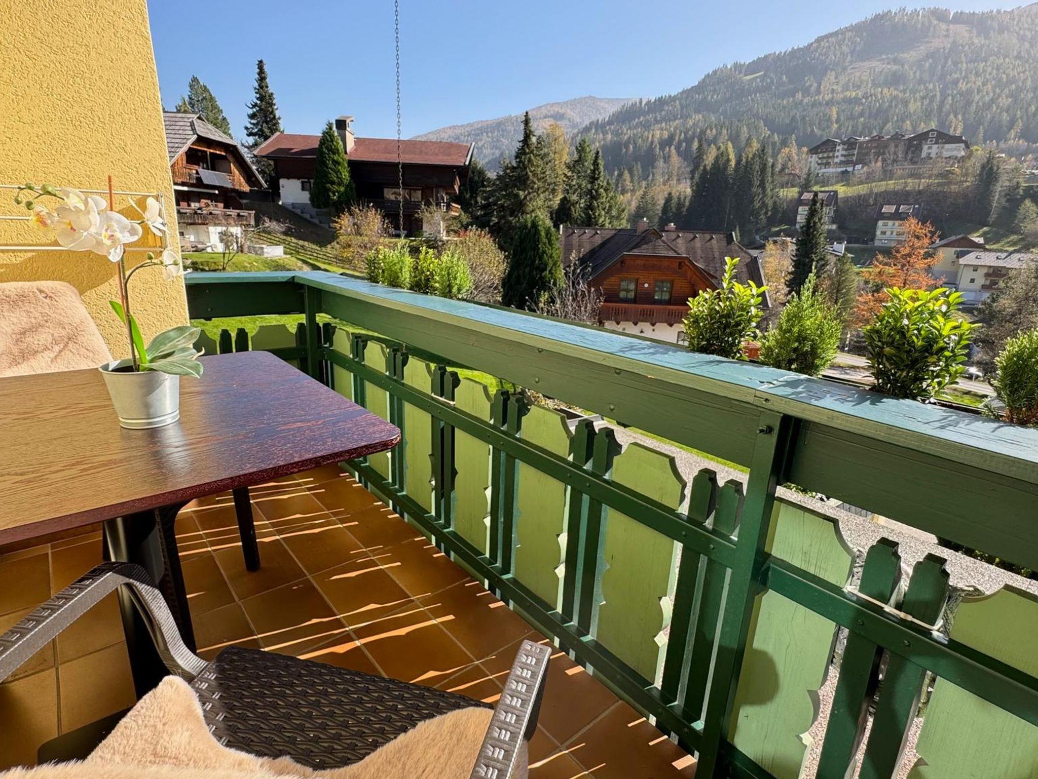 Besonders schön: Der nach Süden ausgerichtete Balkon lädt bereits in den Morgenstunden zum Sonnenbaden ein und bietet einen herrlichen Blick auf die umliegende Bergwelt und die Pisten.