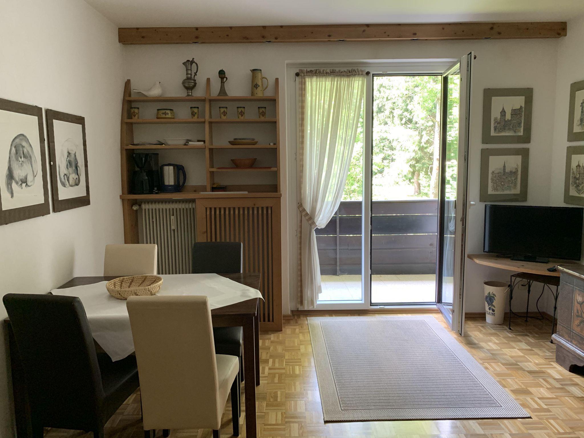 Zwei-Zimmer-Appartement für 2-3 Personen ca. 38 m2, Wohnschlafraum mit Sitzecke-Couchbett, Essplatz, Kochnische, kleiner Schlafraum mit 2 Einzelbetten, Bad/ WC, Balkon