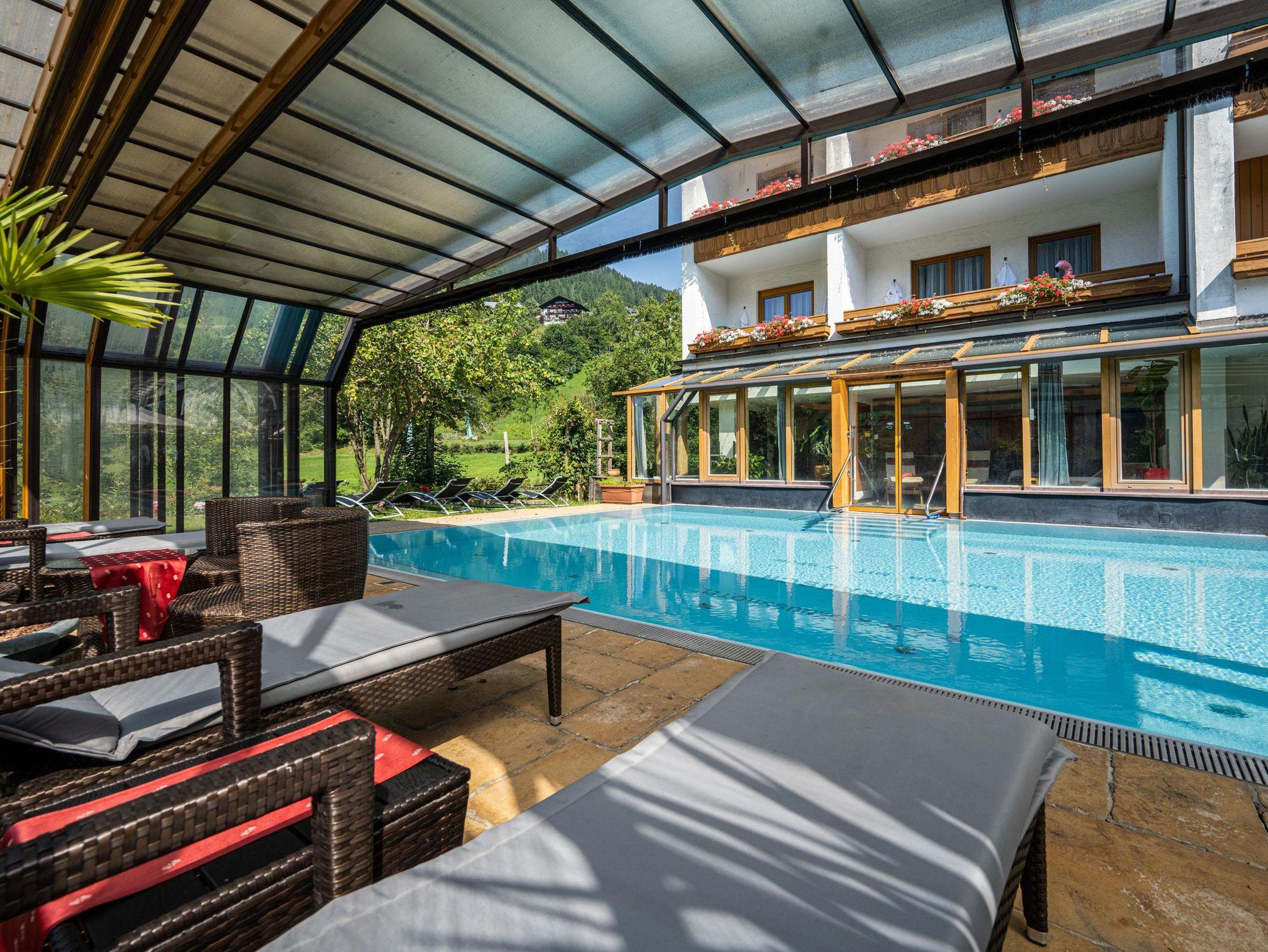 Willkommen im Hotel Almrausch mit der 500 Quadratmeter großen Wellnessoase auf zwei Ebenen. Freuen Sie sich auf jede Menge Relaxen, Energietanken und Kraftholen mit überdachtem, ganzjährig nutzbarem Pool (Sommer 29°C, Herbst/Winter 31°C), einer Saunaoase, verschiedenen Ruheräumen und bei wohltuenden Massagen. Sommerurlaub in Bad Kleinkirchheim