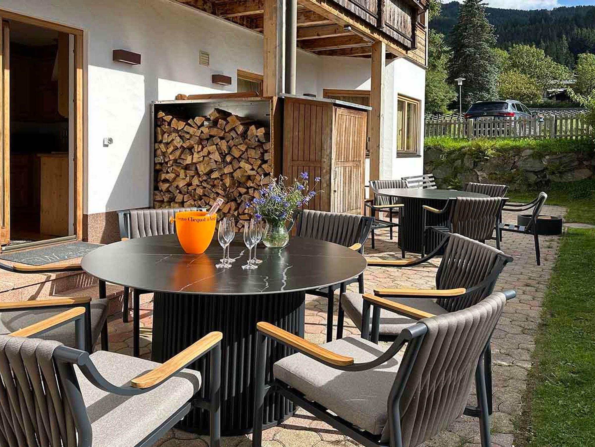 Wohnen, genießen, entspannen Ob am rustikalen Holztisch im Apartment oder draußen auf der Terrasse – bei uns lässt es sich herrlich speisen und entspannen. Die Kinder toben auf der Wiese, während Ihr den Sonnenuntergang mit einem Sundowner genießt oder es Euch am knisternden Kamin gemütlich macht.