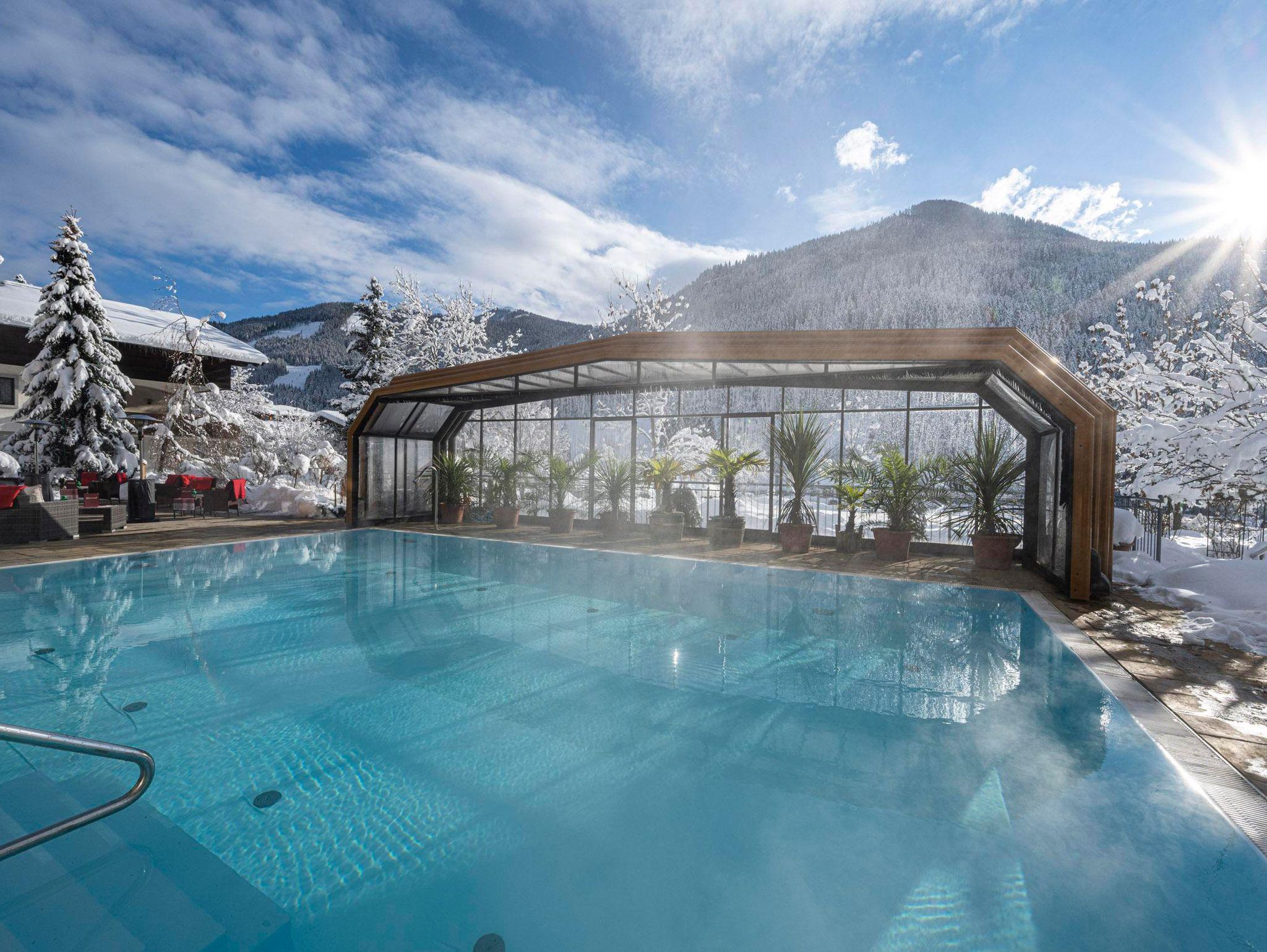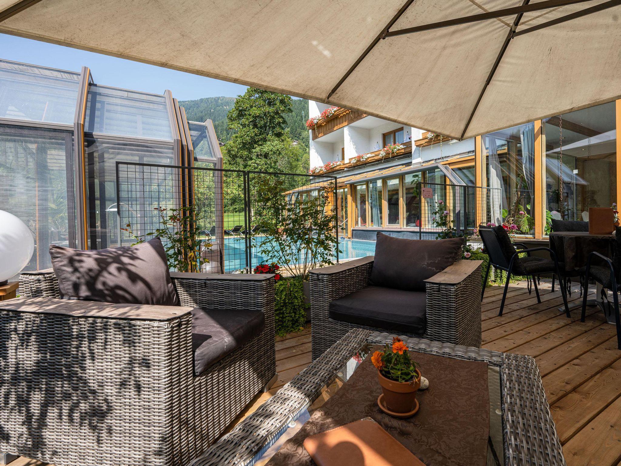 Willkommen im Hotel Almrausch mit der 500 Quadratmeter großen Wellnessoase auf zwei Ebenen. Freuen Sie sich auf jede Menge Relaxen, Energietanken und Kraftholen mit überdachtem, ganzjährig nutzbarem Pool (Sommer 29°C, Herbst/Winter 31°C), einer Saunaoase, verschiedenen Ruheräumen und bei wohltuenden Massagen. Sommerurlaub in Bad Kleinkirchheim