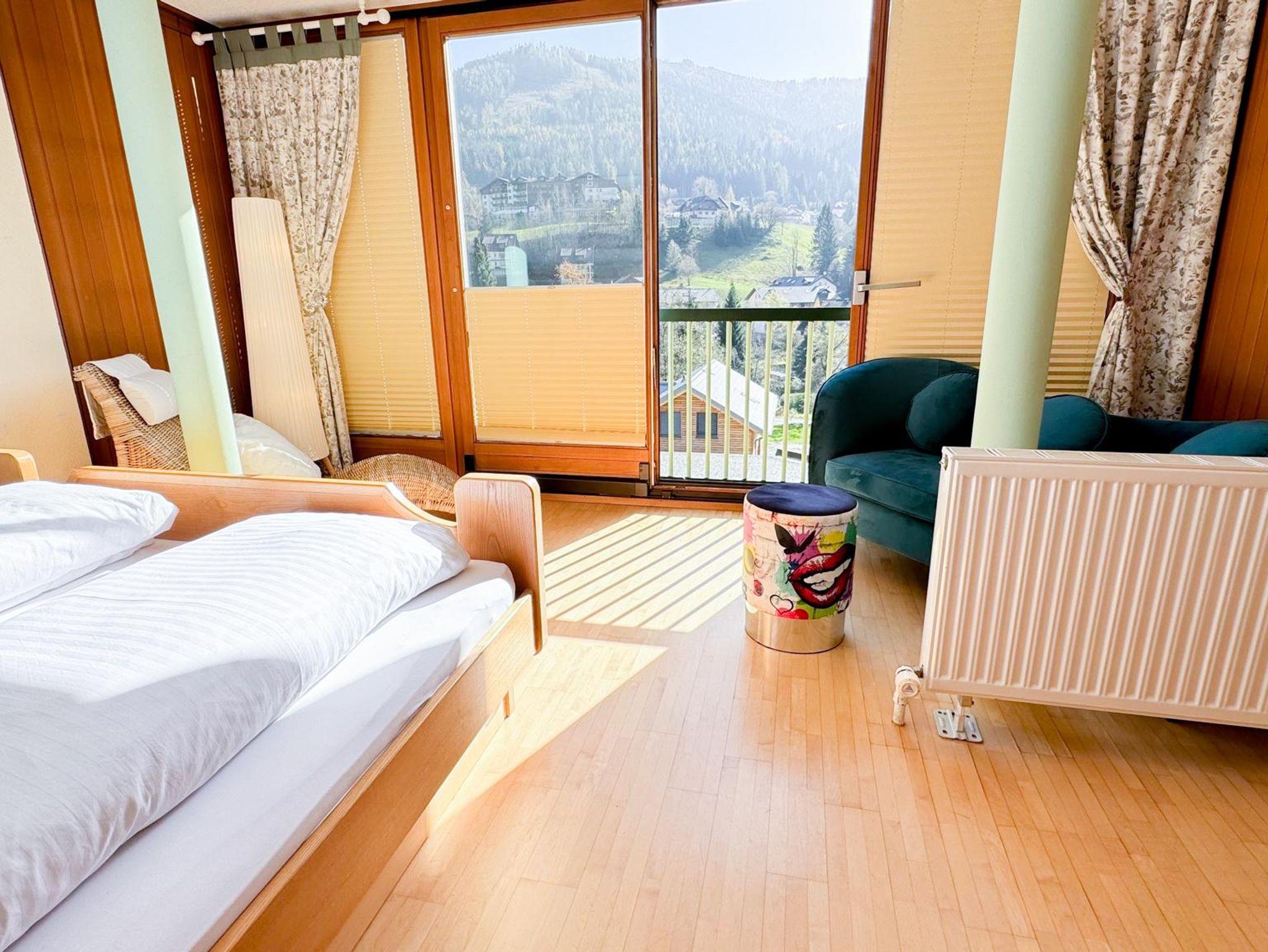 Das absolute Highlight: Das große Panorama-Fenster im Schlafzimmer eröffnet einen direkten Blick auf die umliegenden Berge und die Pisten im Süden. Hier wird jeder Morgen zu einem Erlebnis. Und wer die Sonne lieber im Freien genießt, wird sich über den nach Süden ausgerichteten Balkon freuen – perfekt für ein Frühstück mit Aussicht oder entspannte Stunden in der Nachmittagssonne.