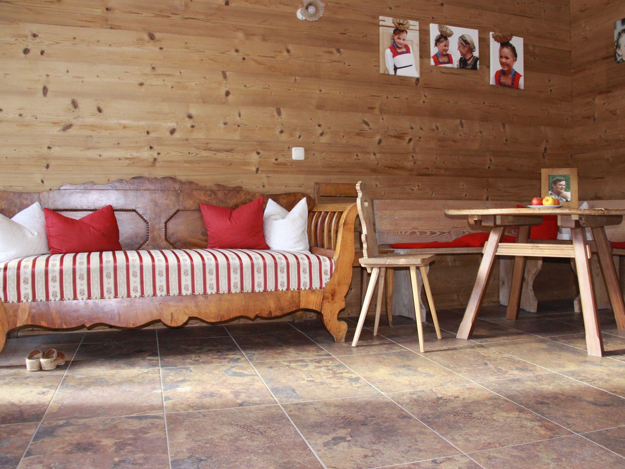 Auf derselben Etage steht ein toller Aufenthaltsraum - der durch einem typischem Bregenzerwälder Kachelofen geschmückt wird - zur Verfügung.