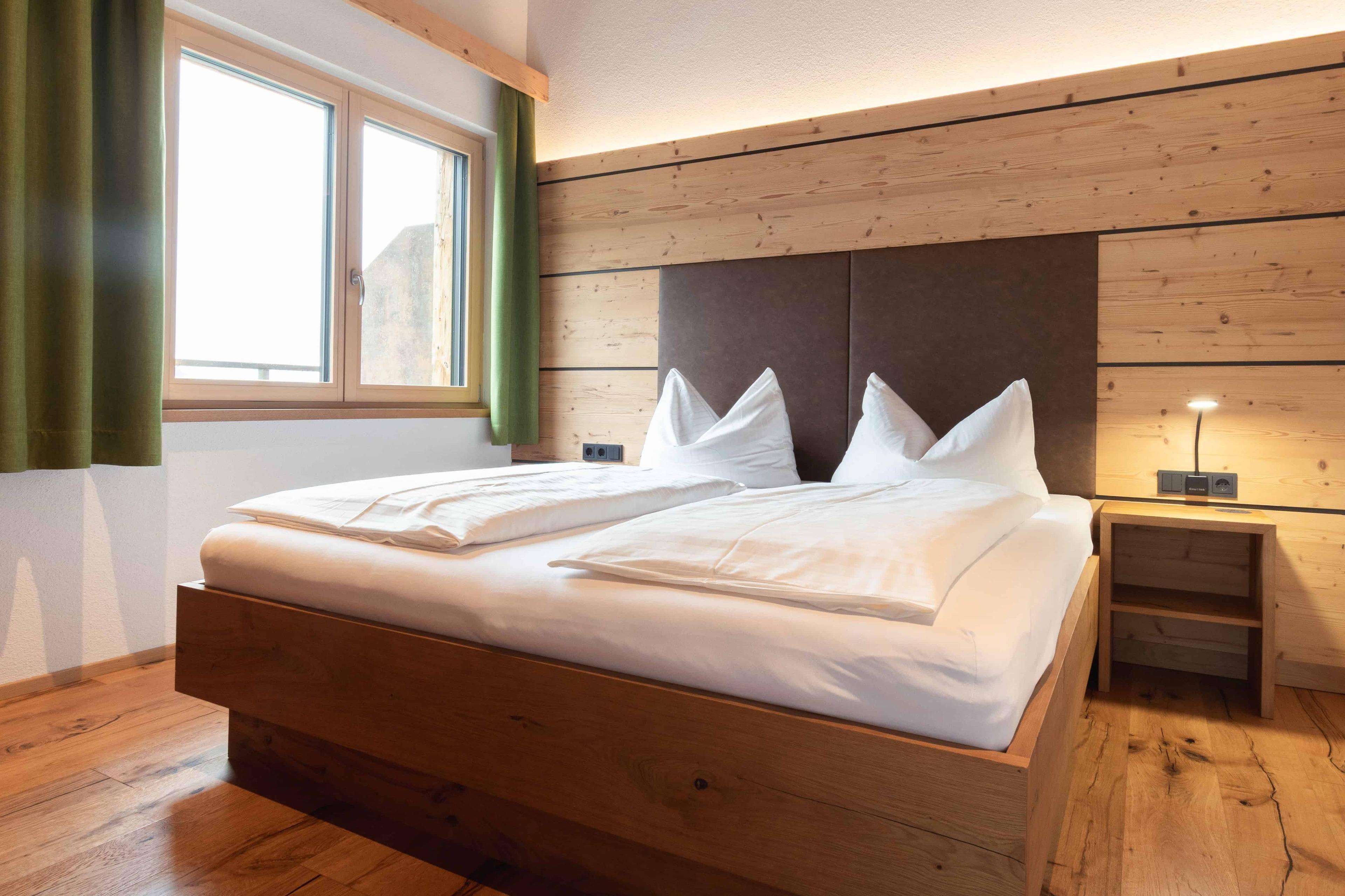 Unsere Ferienwohnungen sind geräumig und mit viel Liebe eingerichtet. Alle Zimmern verfügen über Kabel-TV, Telefon und kostenloses W-Lan. Damit Sie auch Nachts einen erholsamen Schlaf haben legen wir großen Wert auf eine (gesundes und behagliches Wohnklima) Schadstoffarme und gute Raumluft, deswegen sind all unsere Zimmer in Naturholz ausgeführt.