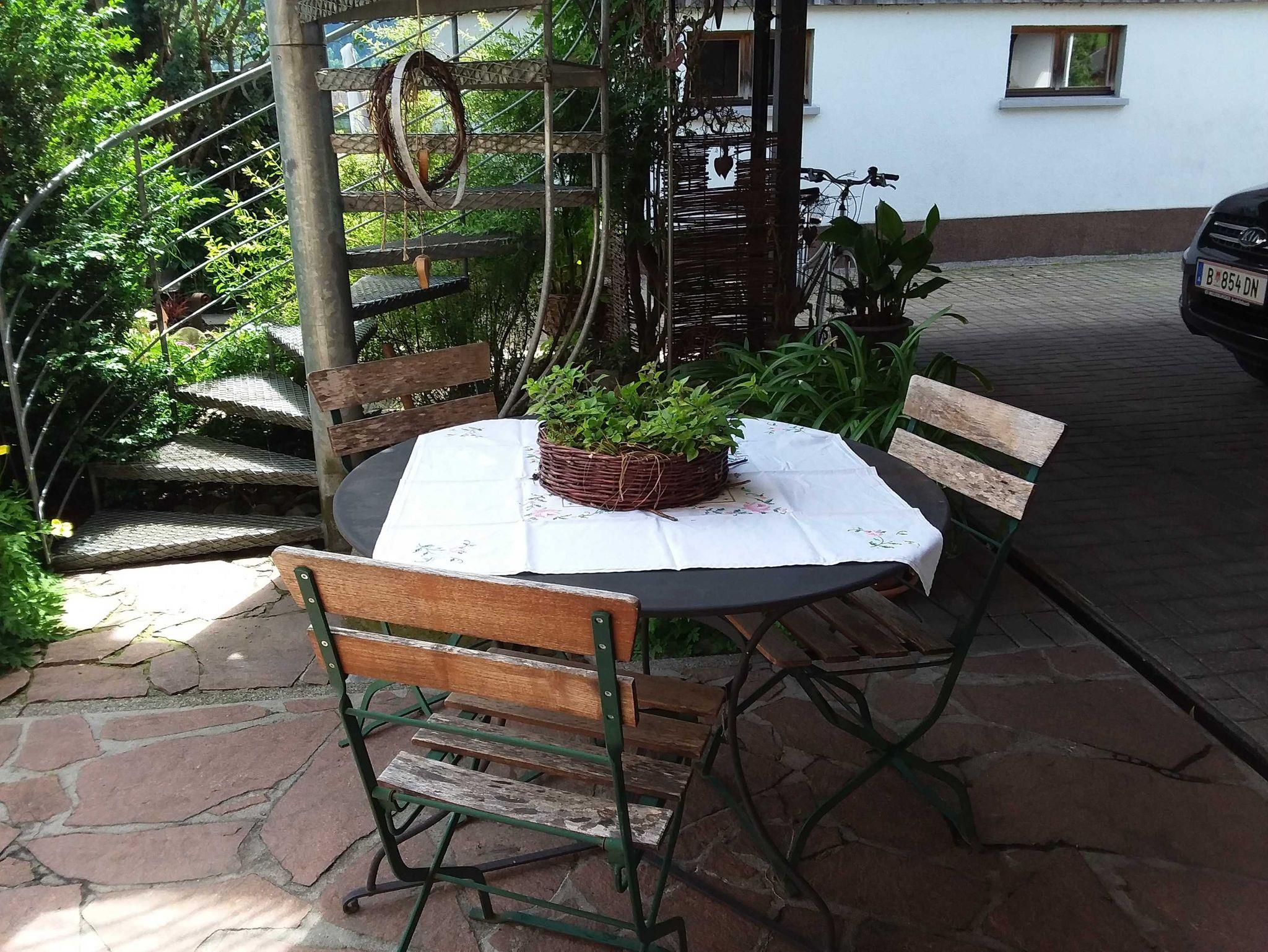 Die ruhige Lage unseres Hauses - mit Blick zum Hirschberg und zur Kanisfluh - ist in Zentrumsnähe und ohne Durchzugsverkehr. Für Ihr Auto steht ein Carport zur Verfügung. In unserem Garten mit sommerlichem Flair steht eine Sitzecke für Sie bereit.