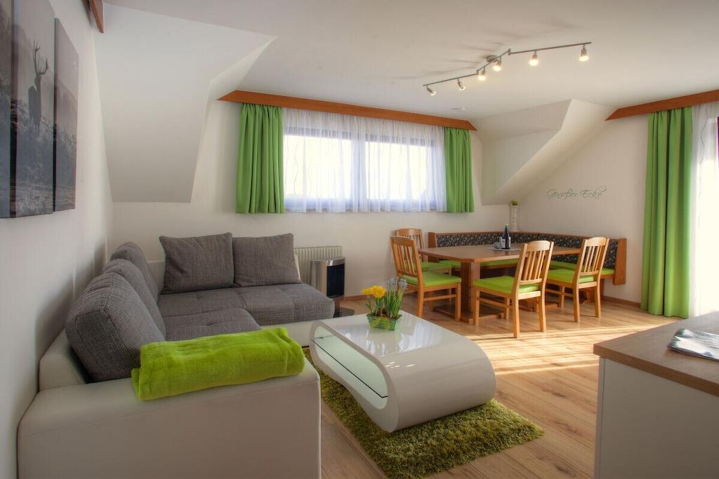 Unsere 5 Ferienwohnungen im Gästehaus bieten Platz für 2 bis 5 Personen. Die Apartments verfügen über ein Schlafzimmer (Doppelbett + Zusatzbett), Badezimmer mit Dusche, 2 WC´s, Vorraum mit Garderobe, ein Wohnzimmer mit Ausziehcouch (2 Betten) und eine voll ausgestattete Küche. Selbstverständlich verfügen alle Einheiten über einen Balkon oder Terrasse mit Panorama-Blick!