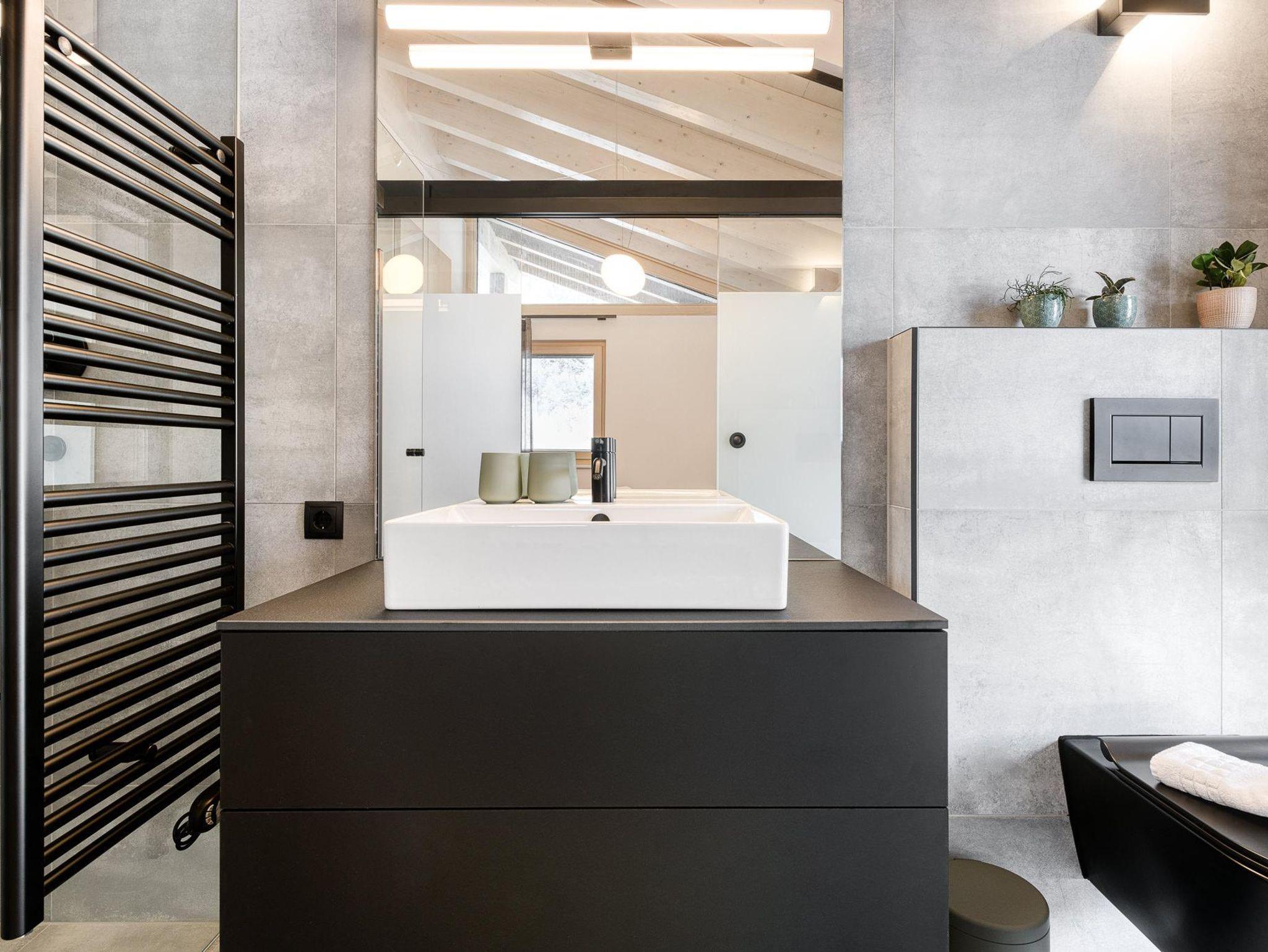 Einerseits die exklusive Sauna auf der nach SW ausgerichteten Terrasse, welche mit einem Panoramablick - selbst beim Saunieren – aufwarten kann.