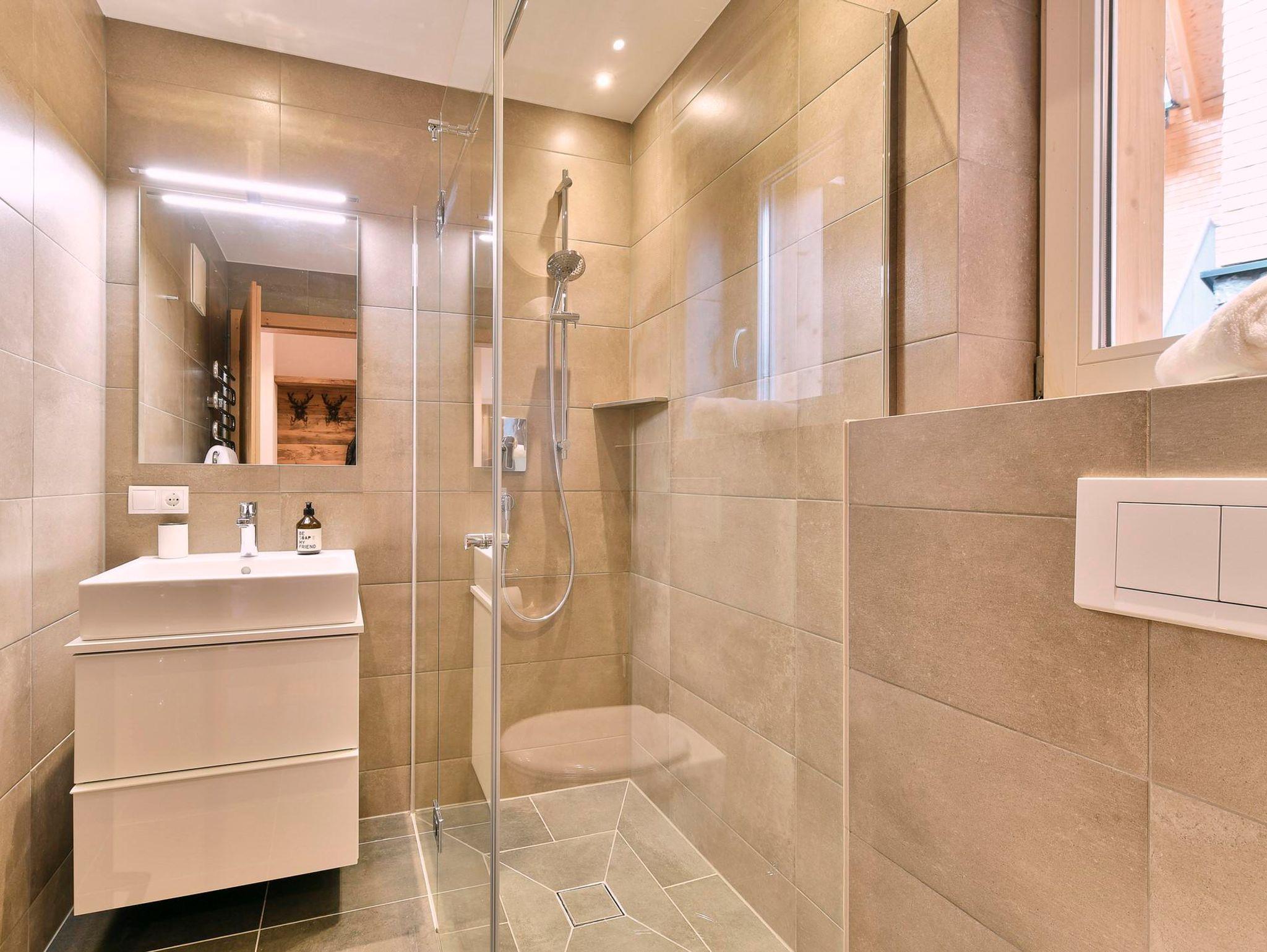 In den Schlafzimmern jeweils ein schönes Badezimmer mit Glasdusche