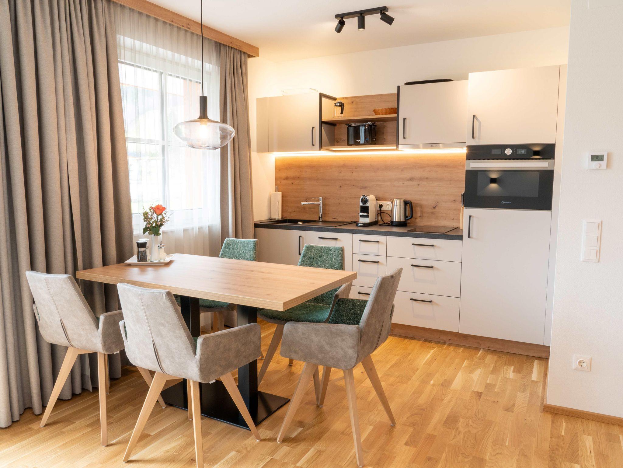 • nagelneuen, topausgestatteten Ferienwohnungen für 1 – 6 Personen mit Wohnküche inkl. „Kitchen-Kit“, 1-2 Schlafzimmern mit hochwertigen „Voglauer“ Betten inkl. Bettwäsche, 1-2 Badezimmern inkl. Handtücher und Haarfön sowie modernen Annehmlichkeiten wie Smart-TV in jedem Zimmer, WLAN, Geschirrspüler, Kühlschrank mit Gefrierfach, Backofen mit Mikrowellenfunktion u.v.m.