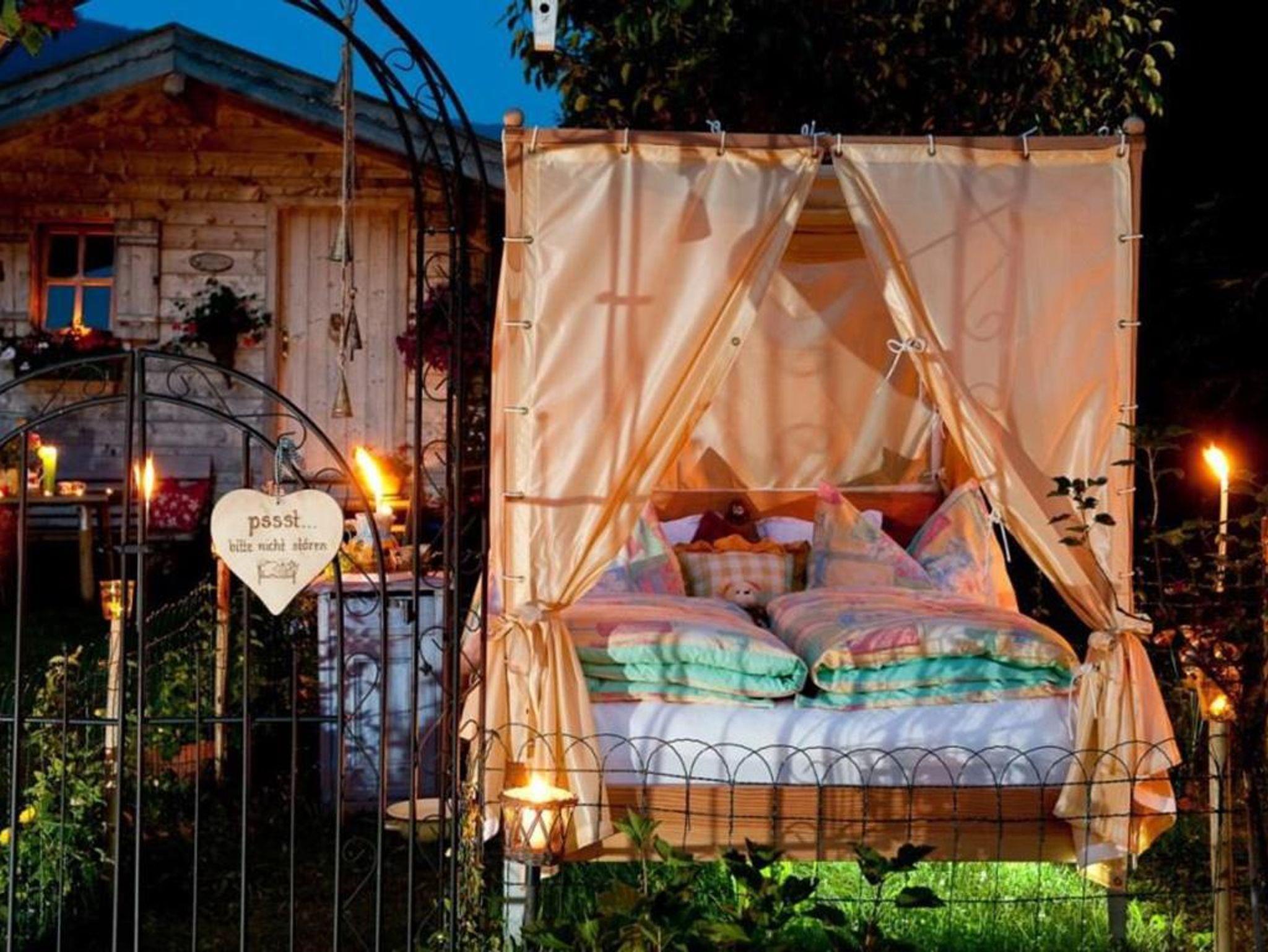 Einzigartig in Gastein haben Naturliebhaber, Pärchen und Abenteurer in den warmen Frühlings- Sommer- und Herbstmonaten bei „die Unterbergerin“ die Möglichkeit im kuscheligen 1000 Sterne Garten-Himmelbett oder im wildromantischen „Heustadl zu übernachten! Weitere Informationen finden Sie auf www.bauernhof-hotel.com