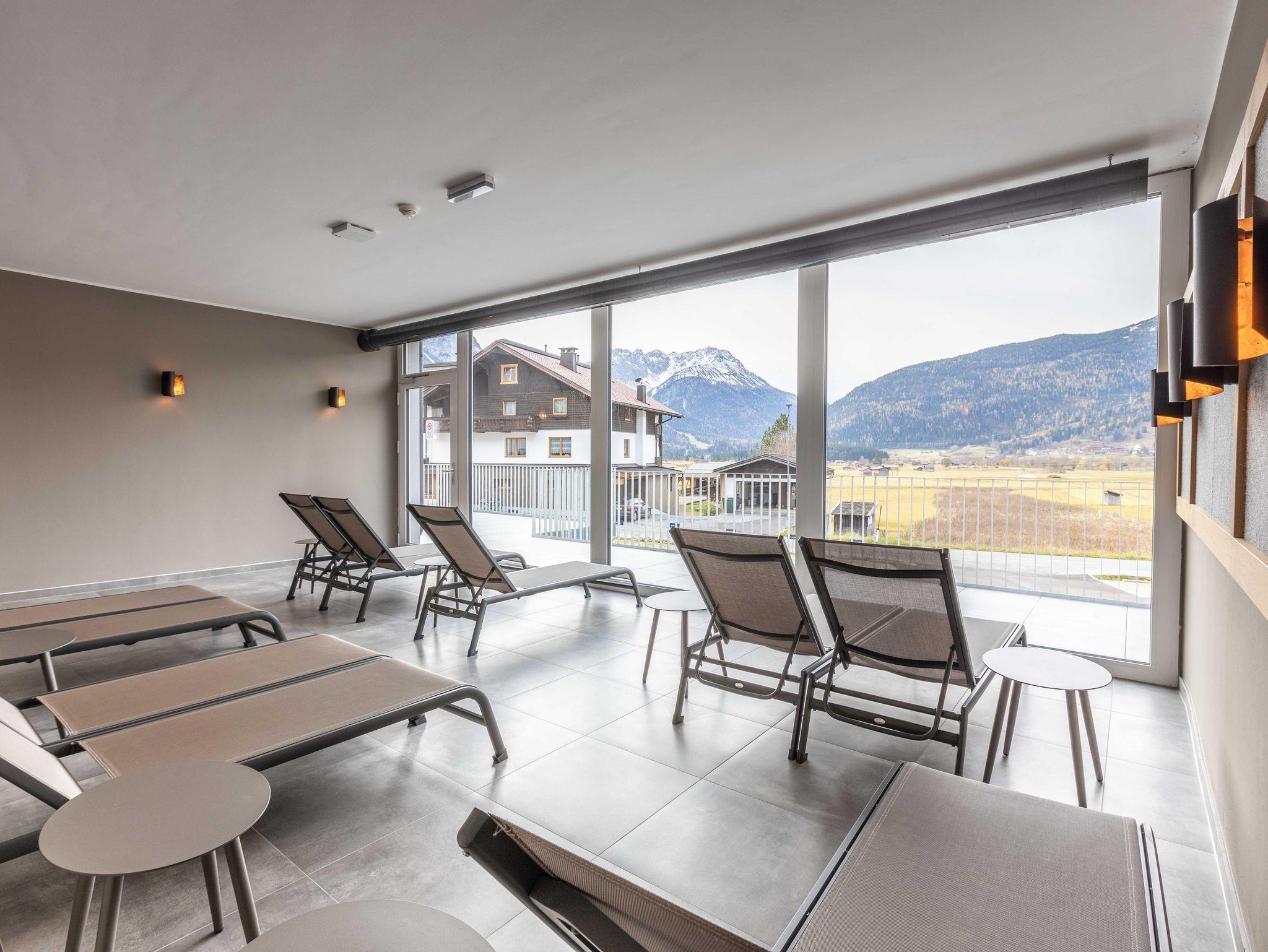 Zugspitz Residences liegt im Herzen von Ehrwald, direkt neben dem Golfplatz und in unmittelbarer Nähe des weit bekannten Ehrwalder Schigebiets. Dieser einzigartige, familienfreundliche Topspot garantiert ganzjährig Sport- und Freizeiterlebnisse der besonderen Art. Die bequem vom Haus aus zu erreichende Zugspitz Arena mit 56 Bergbahnen bietet auf 142 Pistenkilometern abwechslungsreiches Skivergnügen in allen Schwierigkeitsgraden! Des Weiteren sind eine problemlose Anbindung (Flughafen Innsbruck, 75 km - Flughafen München (DE), 147 km - Flughafen Salzburg, 196 km - Flughafen Zürich (CH), 200 km) und diverse Ausflugsziele (Bayrische Königsschlösser, Seefeld, Ötzi Dorf, Swarovski Kristallwelten, Innsbruck uvm.) gegeben. Parkmöglichkeiten sind rund um die Residenz vorhanden. Für Körper und Seele besteht im Erdgeschoß ein exklusiver Wellnessbereich mit Indoor-Infinity-Pool, finnischer Sauna, Bio-Sauna sowie Infrarotkabine, Regenerationsdusche und einem Ruheraum für totale Entspannung. Der Außenbereich animiert im Sommer zum Relaxen in der Sonne und im Winter ist dort Erfrischung nach einem ausgiebigen Saunagang möglich.
