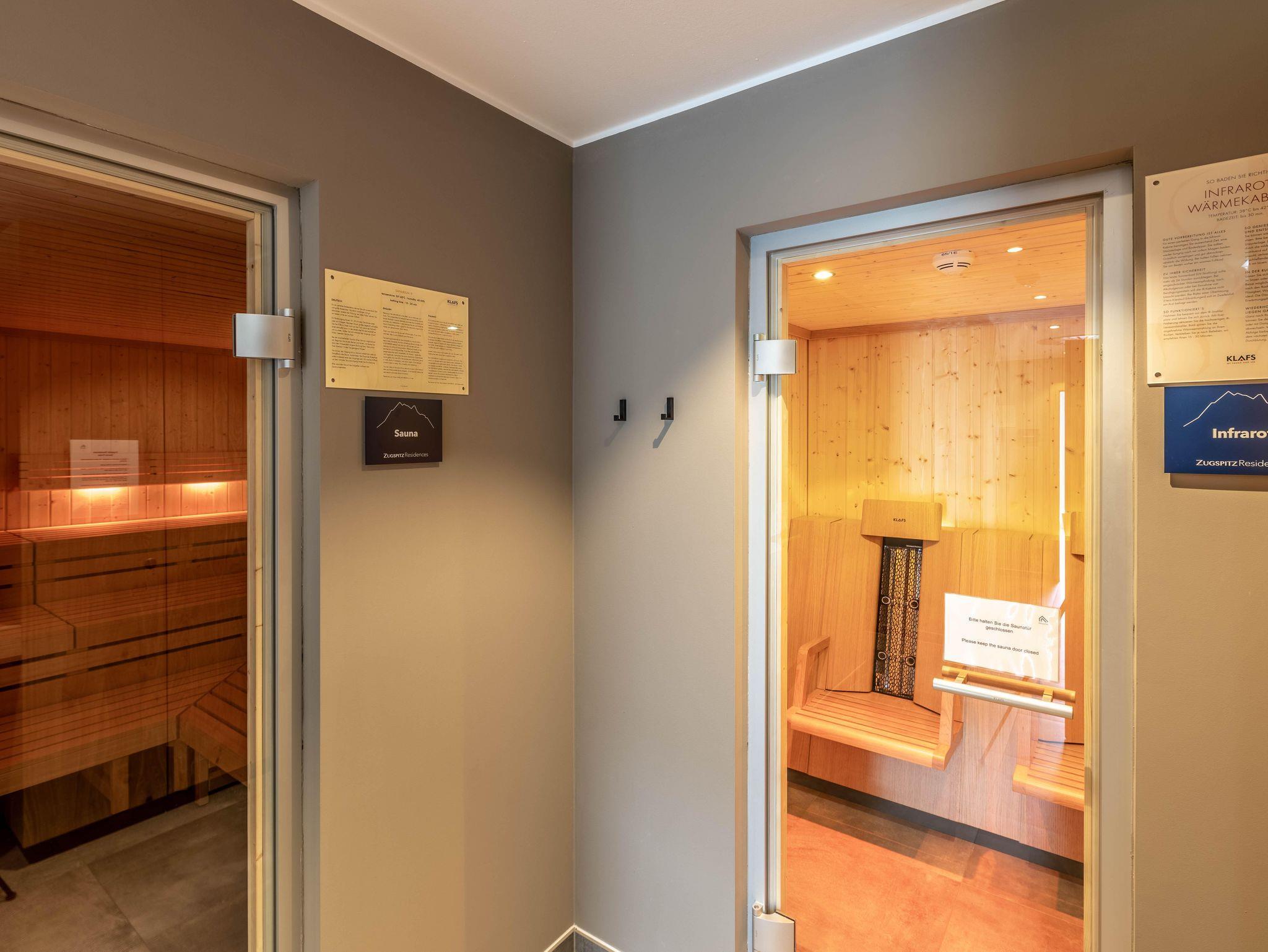Zugspitz Residences liegt im Herzen von Ehrwald, direkt neben dem Golfplatz und in unmittelbarer Nähe des weit bekannten Ehrwalder Schigebiets. Dieser einzigartige, familienfreundliche Topspot garantiert ganzjährig Sport- und Freizeiterlebnisse der besonderen Art. Die bequem vom Haus aus zu erreichende Zugspitz Arena mit 56 Bergbahnen bietet auf 142 Pistenkilometern abwechslungsreiches Skivergnügen in allen Schwierigkeitsgraden! Des Weiteren sind eine problemlose Anbindung (Flughafen Innsbruck, 75 km - Flughafen München (DE), 147 km - Flughafen Salzburg, 196 km - Flughafen Zürich (CH), 200 km) und diverse Ausflugsziele (Bayrische Königsschlösser, Seefeld, Ötzi Dorf, Swarovski Kristallwelten, Innsbruck uvm.) gegeben. Parkmöglichkeiten sind rund um die Residenz vorhanden. Für Körper und Seele besteht im Erdgeschoß ein exklusiver Wellnessbereich mit Indoor-Infinity-Pool, finnischer Sauna, Bio-Sauna sowie Infrarotkabine, Regenerationsdusche und einem Ruheraum für totale Entspannung. Der Außenbereich animiert im Sommer zum Relaxen in der Sonne und im Winter ist dort Erfrischung nach einem ausgiebigen Saunagang möglich.