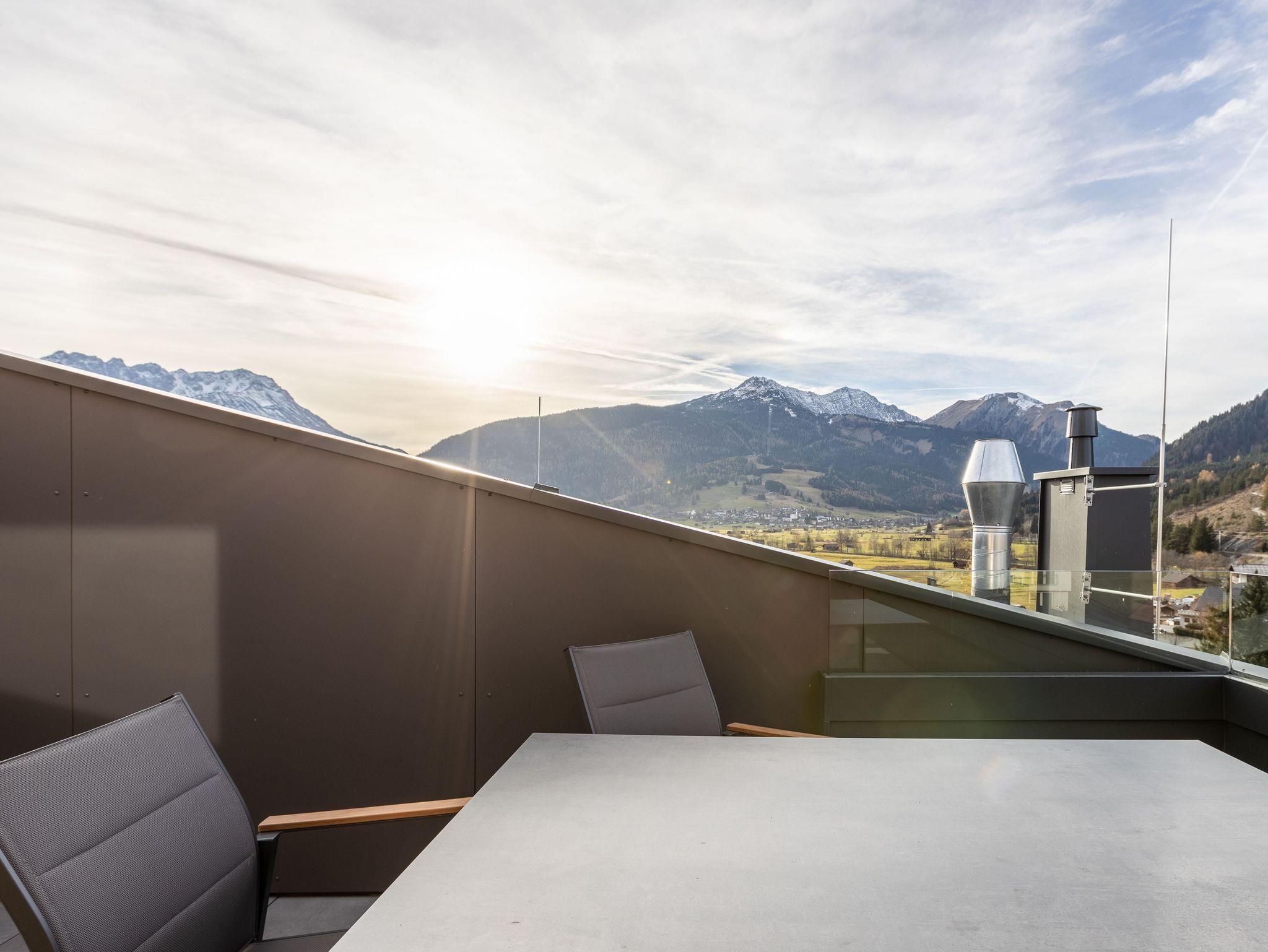Das Apartment für 6 Personen bietet Wohnküche, 2 Schlafzimmer (Boxspringbetten, Balkonzugang+1x eigenes Bad), 2 Bäder, Terrasse+Balkon. Der Eingangsbereich, führt direkt in die Wohnküche, welche mit Küchengeräten, Kühl-Gefrierkombi sowie Nespressomaschine ausgestattet ist. Der Esstisch bietet Platz, um ein selbstgekochtes Mahl zu genießen. Im hellen Wohnbereich (Balkonzugang) befinden sich TV, Schrank+Ausziehsofa. Auf Anfrage ist das Apt. mit dem anderen Penthouse buchbar. (für 12 Personen)