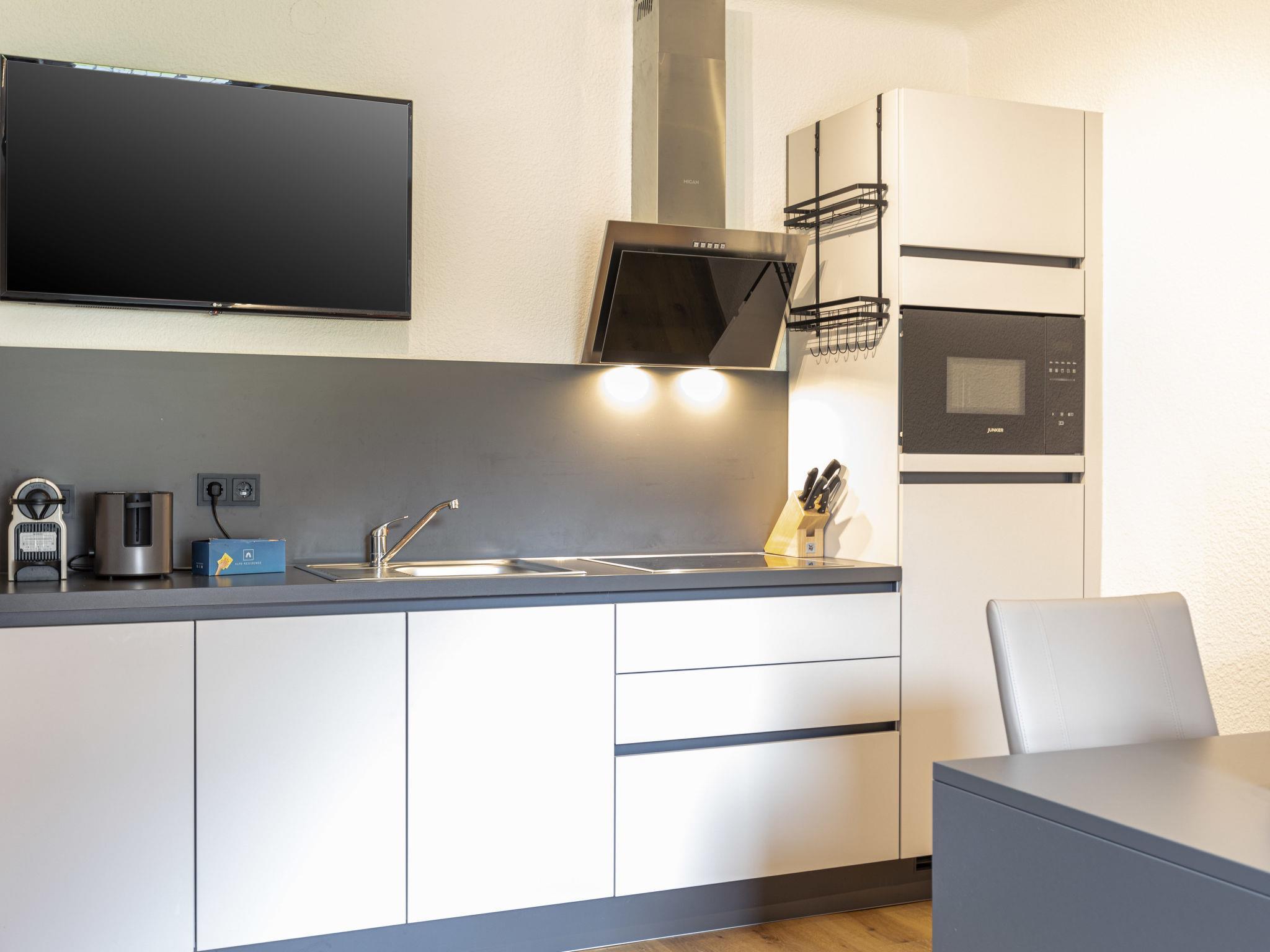 "für bis zu 2 Personen", 2-Zimmer-Wohnung 35 bis 40 m2. Hell, modern eingerichtet: 1 Doppelzimmer. Wohnküche (Geschirrspüler, 4 Glaskeramikplatten, Toaster, Mikrowelle, elektrische Kaffeemaschine, Kapseln für die Kaffeemaschine (Nespresso) extra). Dusche/WC. Holzdielenboden. Balkon oder Terrasse. Balkonmöbel. Sehr schöne Panoramasicht. Zur Verfügung: Internet (WLAN, gratis). Bitte beachten: Nichtraucher-Unterkunft. Maximal 1 Haustier/Hund erlaubt. Rauchmelder. Beim Mietobjekt handelt es sich um ein Typenhaus bzw. Um eine Typenwohnung. EZ152