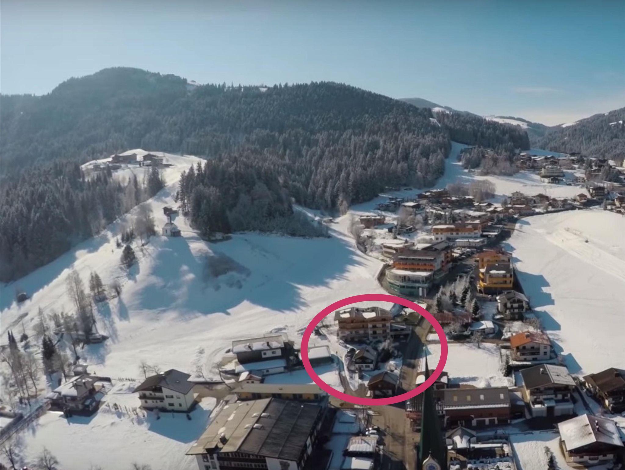 ....unser Appartementhaus befindet sich in zentraler Lage, direkt im Zentrum von Ellmau, mit Blick zum Wilden Kaiser.