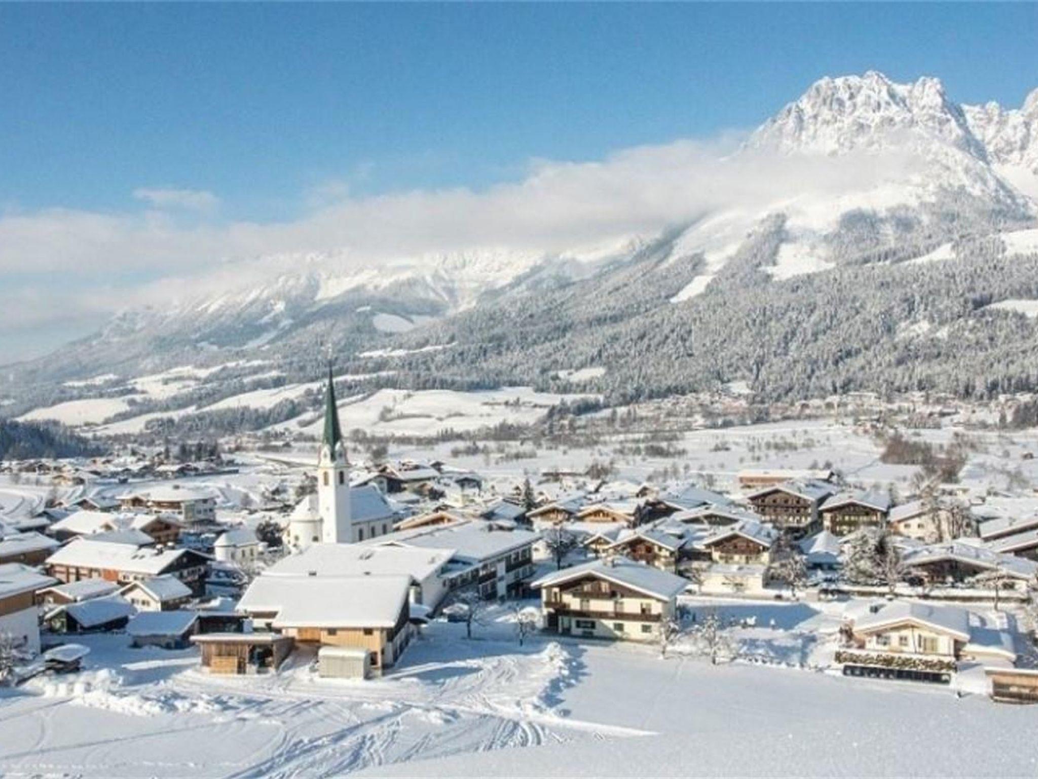 Vom Appartement aus hat man eine tolle Aussicht auf den Wilden Kaiser. Man ist schnell in der Ortsmitte, wo es alles mögliche gibt.