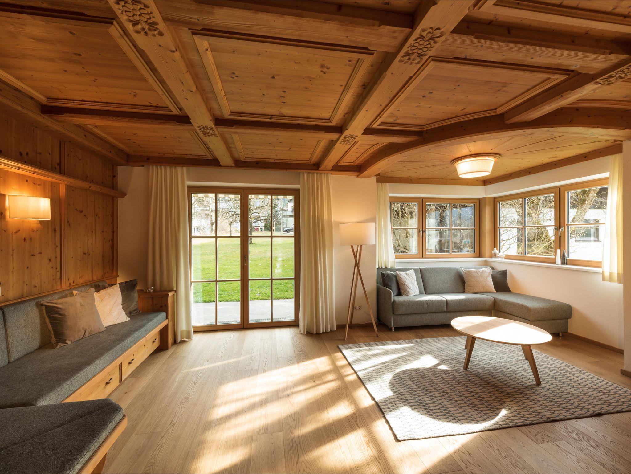 Genießen Sie den schönen Ausblick auf den Wilden Kaiser und den großen Garten, der allen Gästen des Hauses zur Verfügung steht.