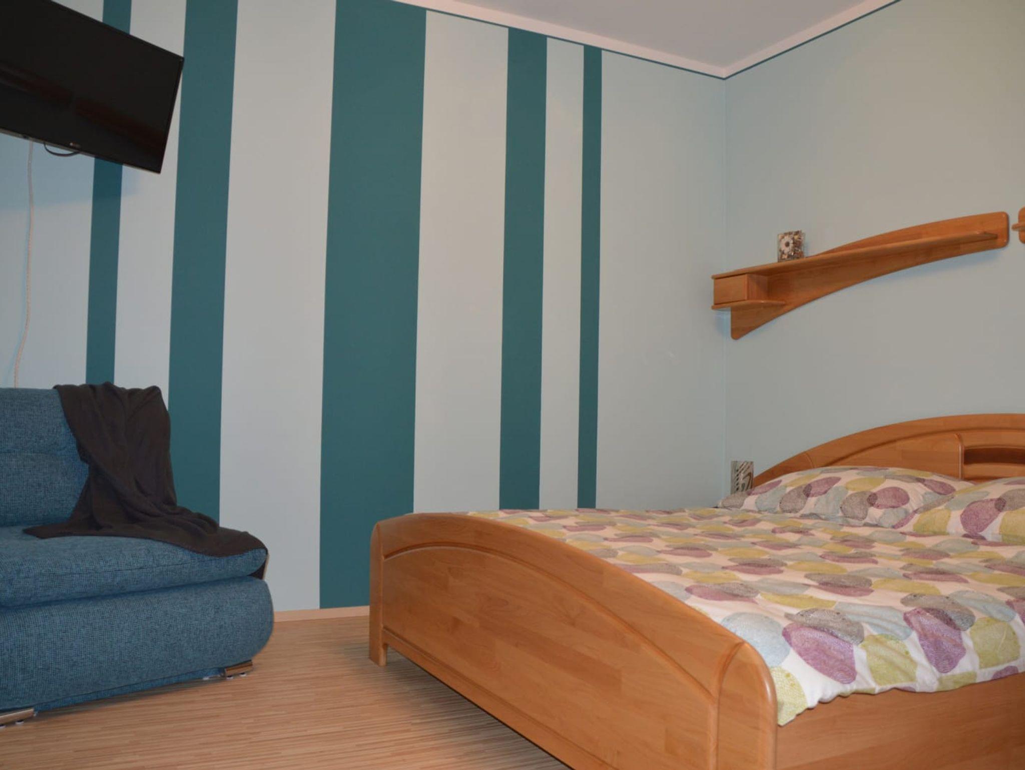 Die Wohnung besteht aus einer großen Wohn-Küche mit ausziehbarer Bank (integrierte Matratze) für 2 Personen, einem Schlafzimmer mit Doppelbett und zusätzlichem Schlafsofa, einem großen Badezimmer mit Badewanne inkl. Dusche und Waschmaschine, einer seperaten Toilette, einem großen Schrankraum und einem Abstellraum im Eingangsbereich.