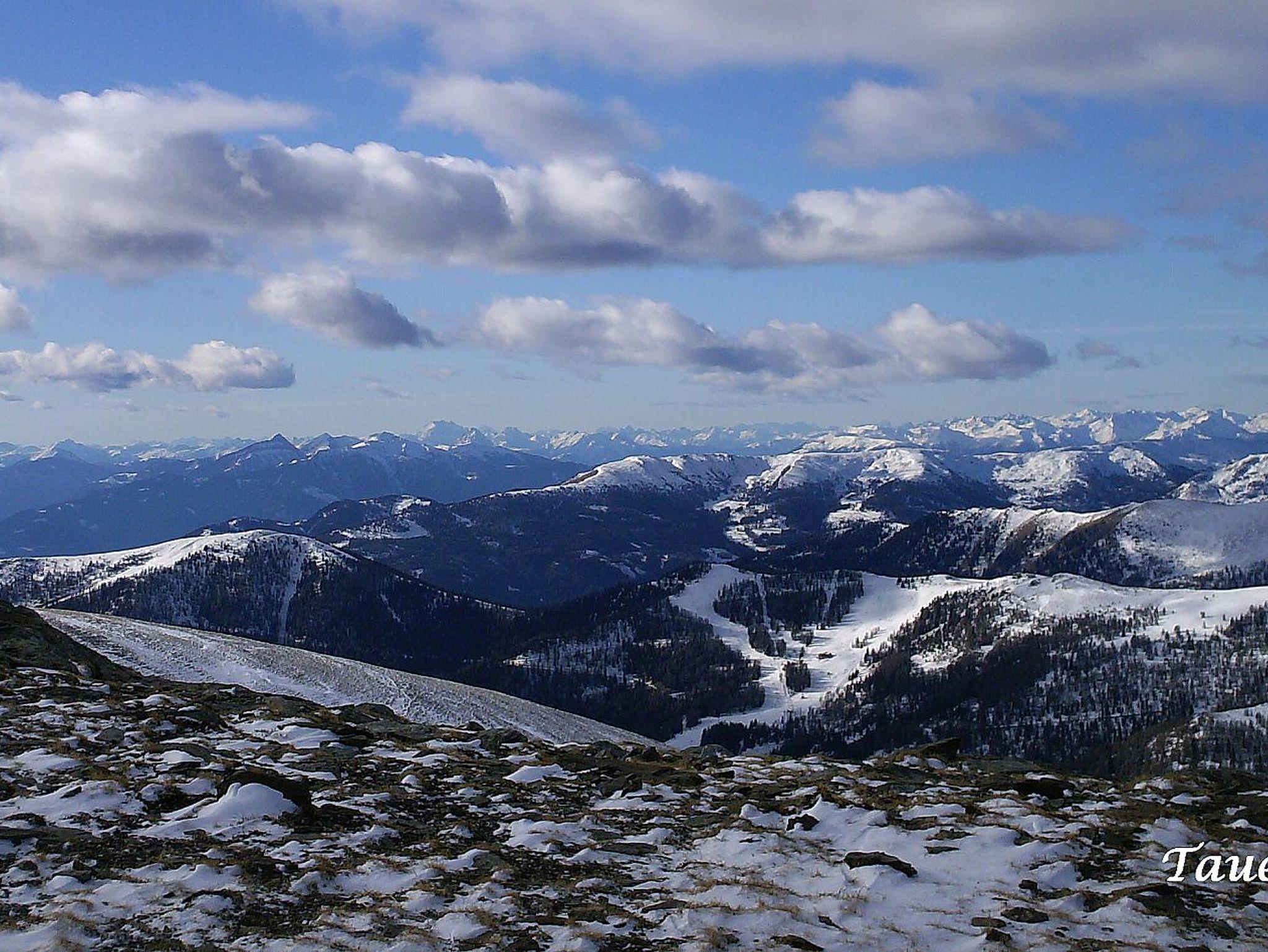 Auf dem 711 m² großen Grundstück in 1800 m Höhe am Falkert (2308 m), am Rande des Naturschutzgebietes Nockberge in Kärnten / Österreich, unweit vom Millstätter See, nahe Bad Kleinkirchheim, steht das Almhaus aus massiven Fichtenstämmen.