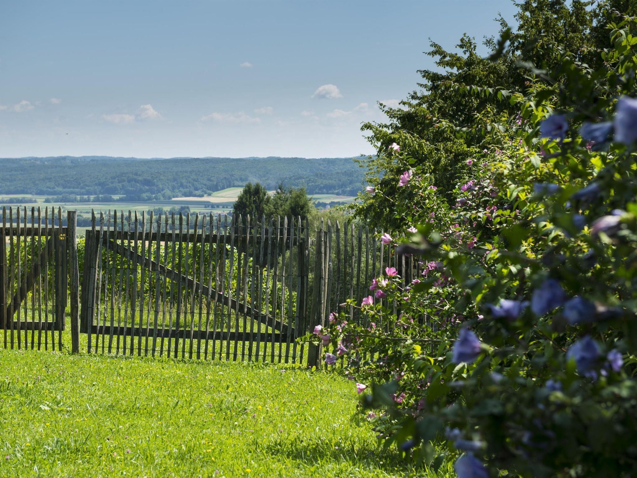 „Das Nussberg“, 60m² das moderne Weingartenhaus und „das Weinberg“, 80m² das traditionelle Kellerstöckl sind umgeben von Weinstöcken und befinden sich in absoluter Ruhelage. Atemberaubend ist der Ausblick auf den gegenüberliegenden Weinberg, zur Riegersburg und ins breite Raabtal mit seinen Kürbis- und Mais- und Getreideäckern.