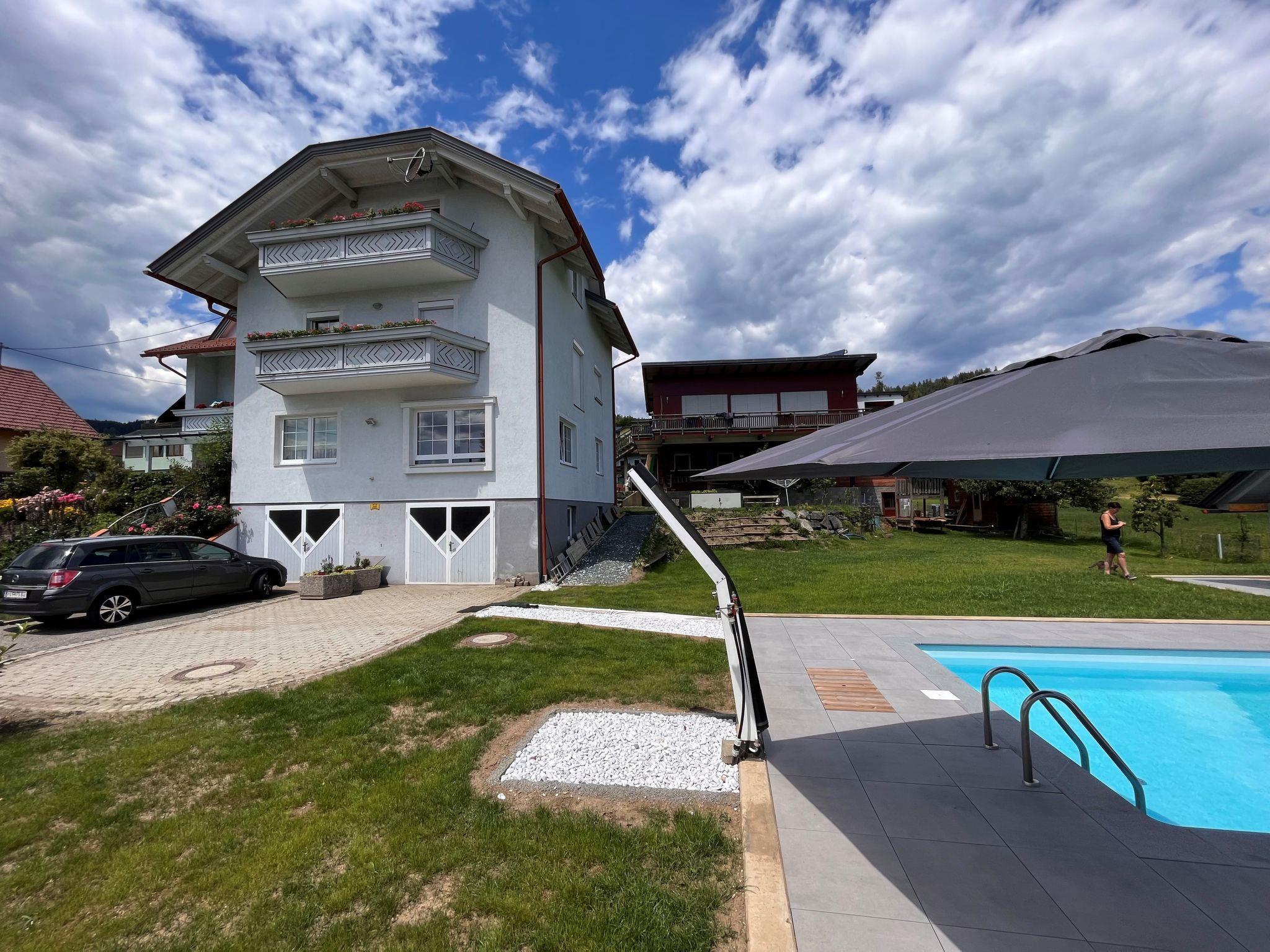 Schönes Dreifamilienhaus "Frank". Im Ortsteil Dellach, 7 km vom Zentrum von Feldkirchen, ruhige, sonnige Lage, 200 m vom Waldrand, 8 km vom See, 20 km vom Skigebiet, im Grünen. Zur Mitbenutzung: Garten 1'500 m2, Liegewiese, Schwimmbad (7 x 4 m, saisonale Verfügbarkeit: 15.Mai. - 15.Sep.). Tischtennis, Laube, Gartenmöbel, Grill, Kinderspielplatz. Im Hause: Sonnenterrasse, Zentralheizung. Parkplatz. Lebensmittelgeschäft 6 km, Restaurant 6 km, Bushaltestelle 200 m, Bahnstation "Feldkirchen in Kärnten" 6 km, Strandbad 6 km, Badesee "Ossiachersee" 8 km. Golfplatz (18 Loch) 6 km, Tennis 4 km, Gondelbahn 20 km. Bekannte Skigebiete sind gut erreichbar: Gerlitzen (Kanzelbahn) 20 km, Simonhöhe 22 km, Bad Kleinkirchheim 34 km. Bekannte Seen in der Umgebung sind gut erreichbar: Ossiachersee 8 km, Wörthersee 15 km. Bitte beachten: Der Besitzer wohnt im selben Haus. Eigentümer hat einen Hund. Weitere Unterkünfte sind buchbar.