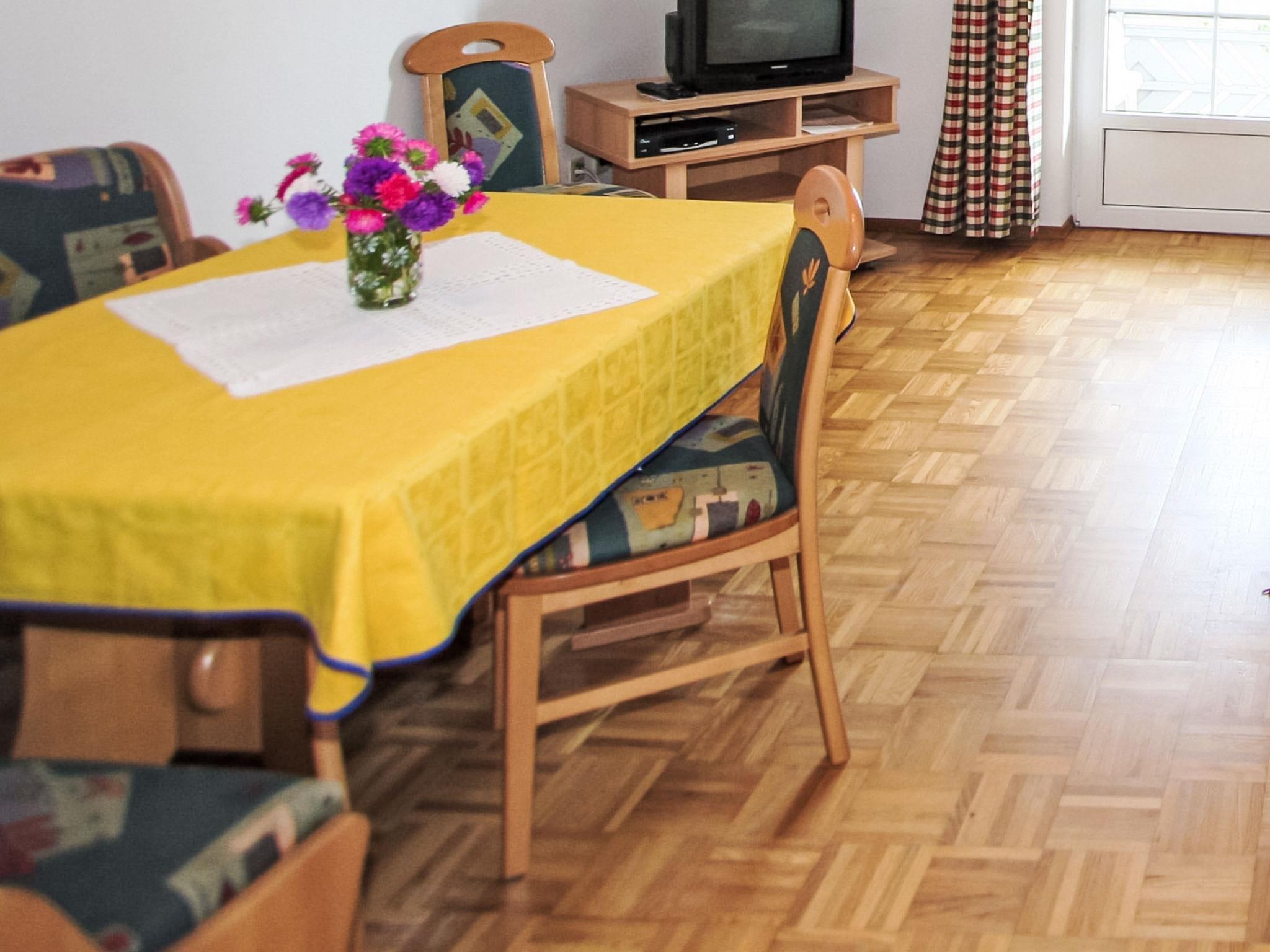 3-Zimmer-Wohnung 60 m2 im 1. Stock. Hell, komfortabel und gemütlich eingerichtet: Eingang. Wohn-/Esszimmer mit Essecke und Sat-TV (Flachbildschirm). Ausgang zum Balkon. 1 Doppelzimmer. Ausgang zum Balkon. 1 Zimmer mit 1 Bett (90 cm, Länge 190 cm), 1 Doppelbett. Kleine, offene Küche (Backofen, Geschirrspüler, 4 Glaskeramikplatten). Dusche, sep. WC. Grosser Balkon, Südlage. Balkonmöbel. Schöne Sicht auf die Berge. Zur Verfügung: Internet (Wireless LAN, gratis). Bitte beachten: Nichtraucher-Unterkunft. Maximal 1 Haustier/Hund erlaubt. Rauchmelder, Feuerlöscher.
