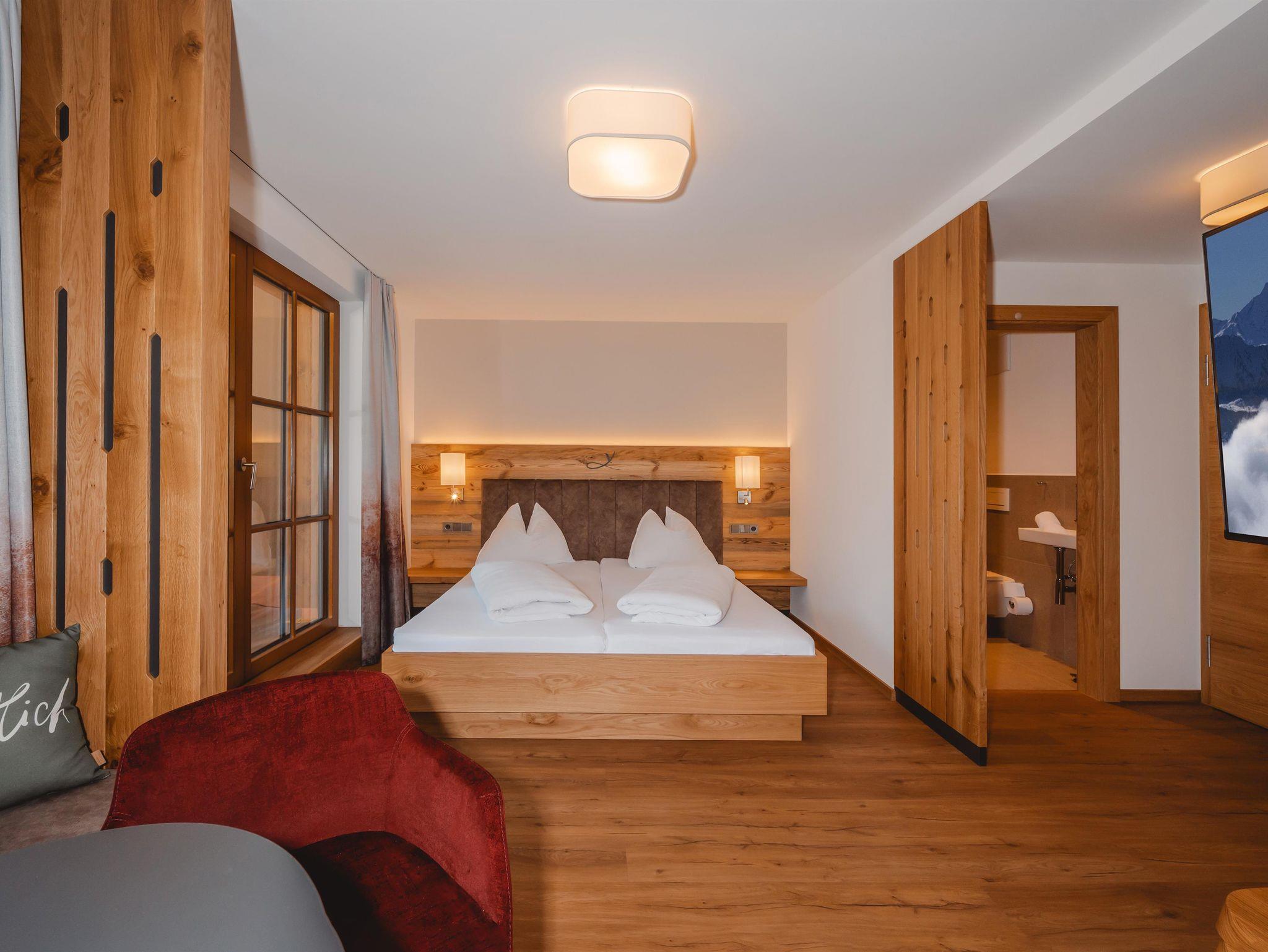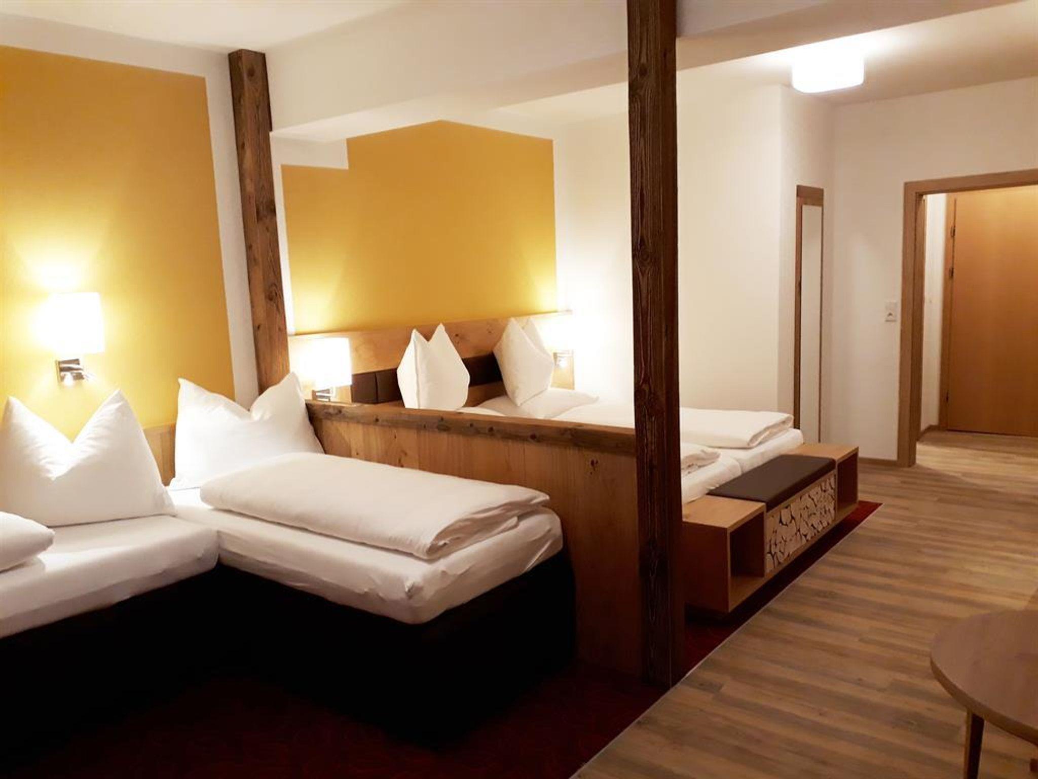 Schönes Doppelzimmer mit 2 möglichen Zustellbetten oder einer Ausziehcouch.