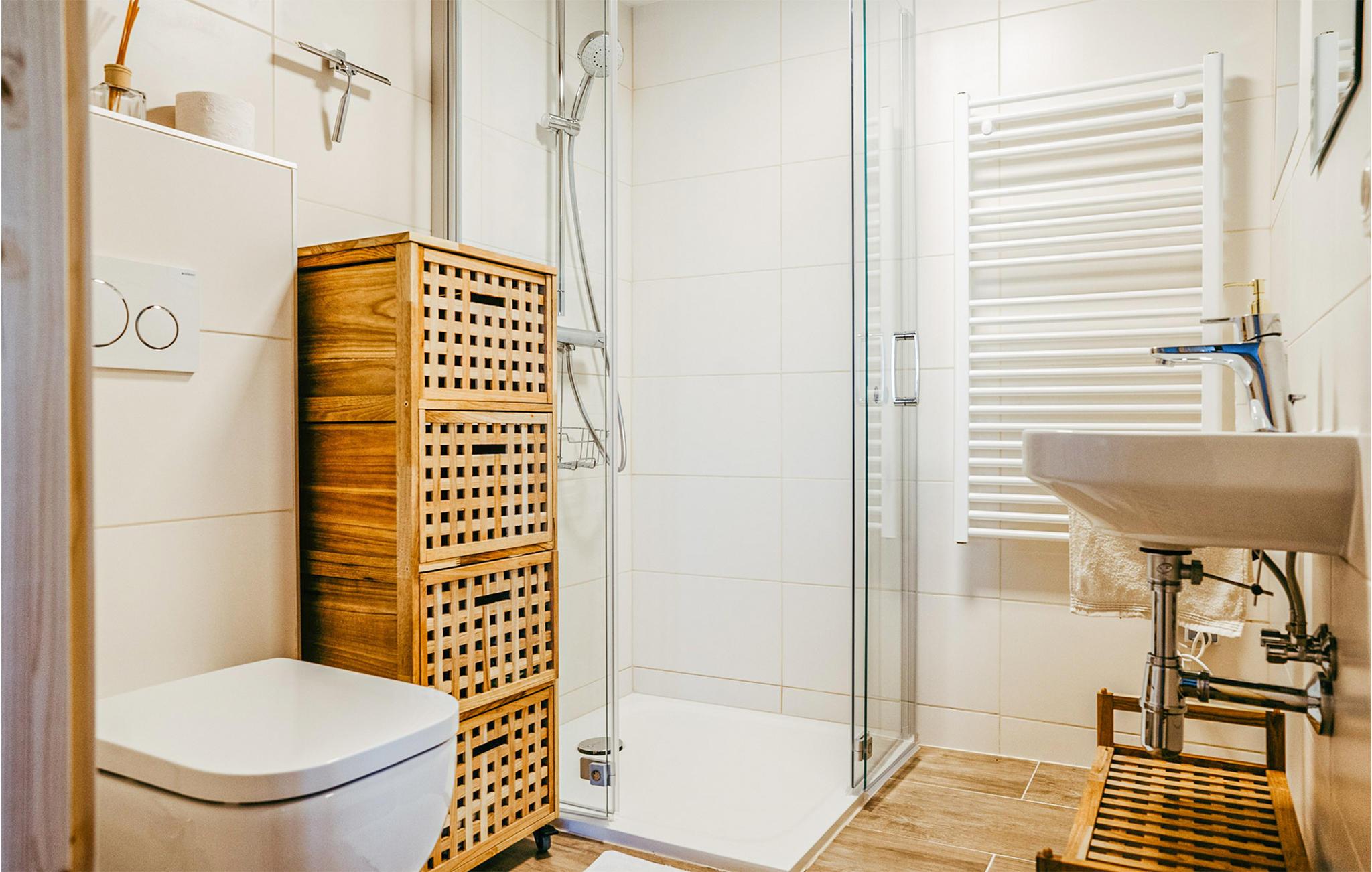 Badezimmer 4m2 (nr. 1) - WC. Warmes und kaltes Wasser. Dusche