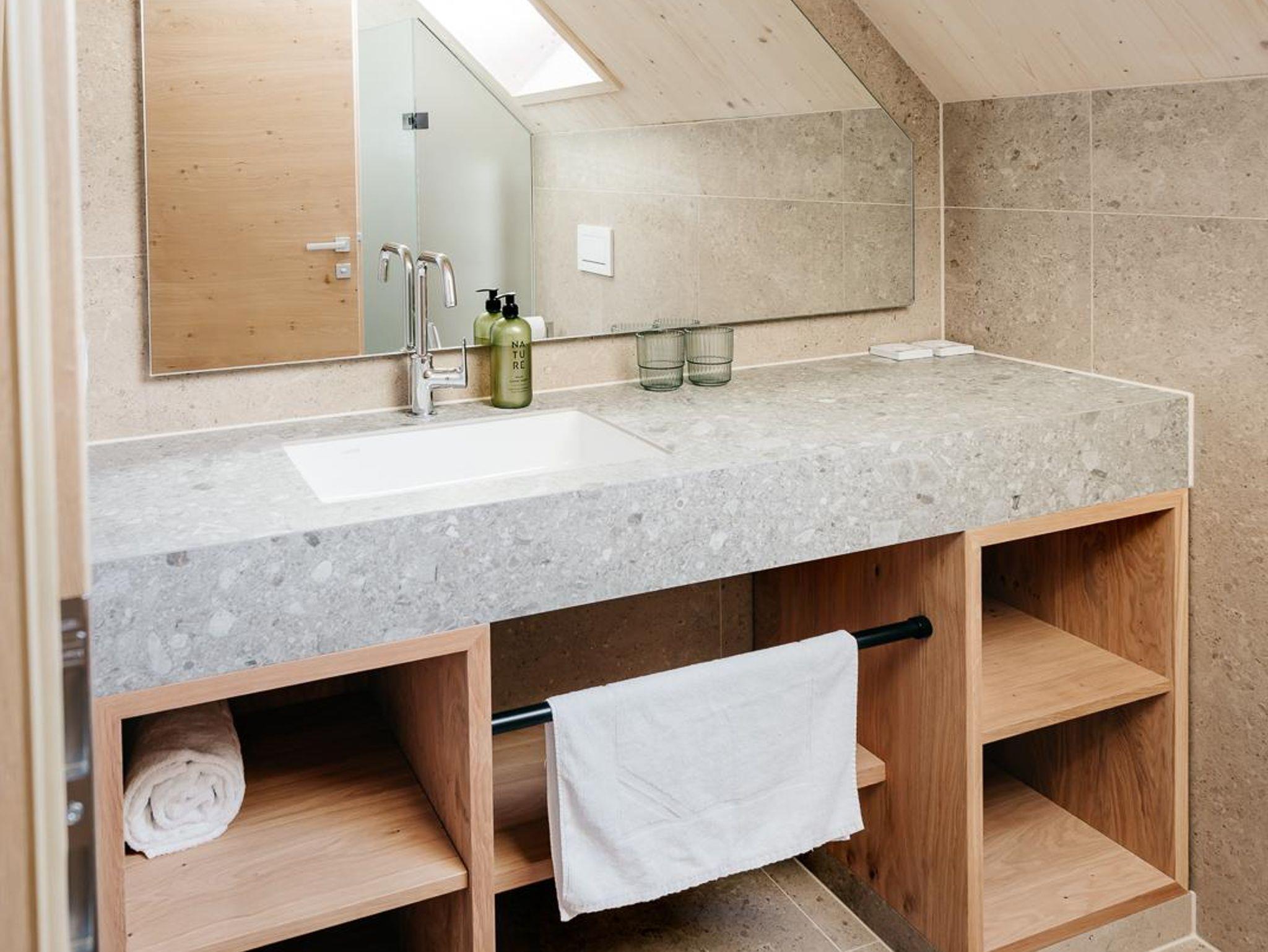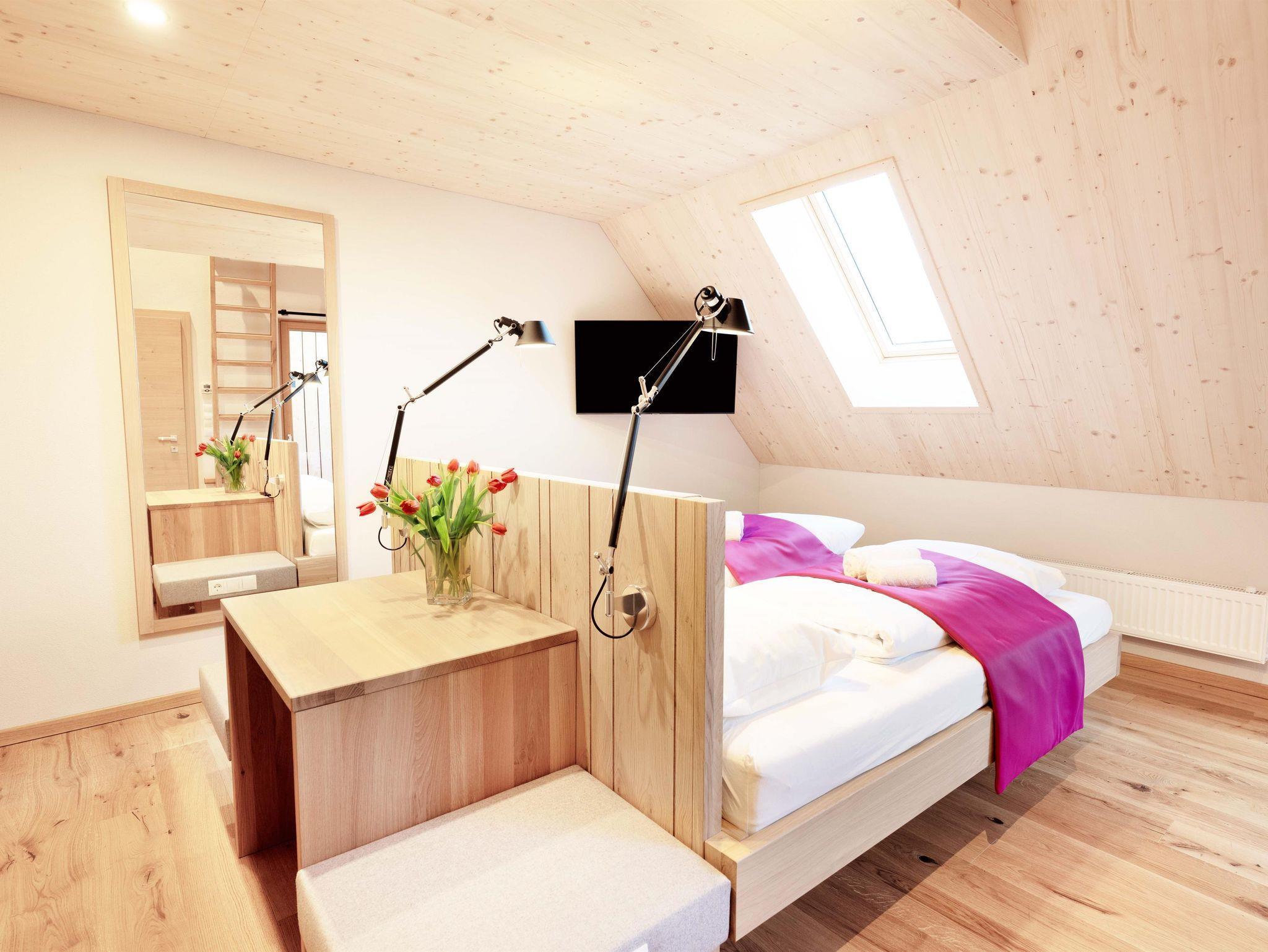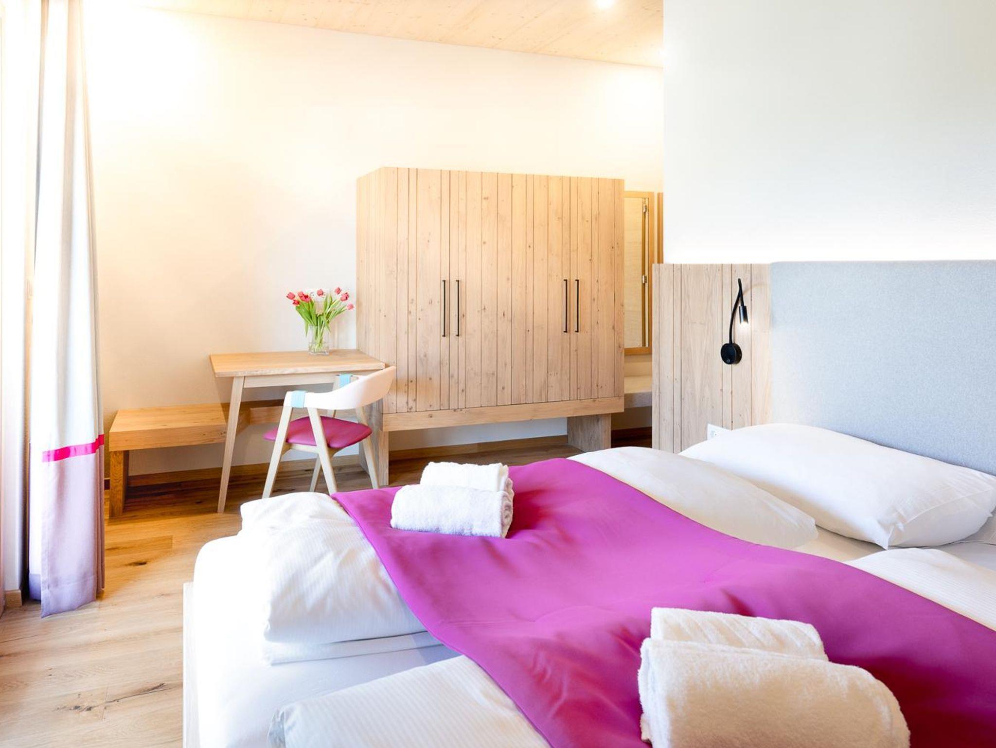 Dieses neue, komfortable Zimmer Bergblick ist eine Oase der Ruhe, in der Sie sich vom ersten Moment an wohlfühlen werden. Es wurde mit größter Sorgfalt und ausschließlich aus ausgewählten Naturmaterialien gestaltet, was sich in den edlen Holzböden und der hochwertigen Verarbeitung widerspiegelt.