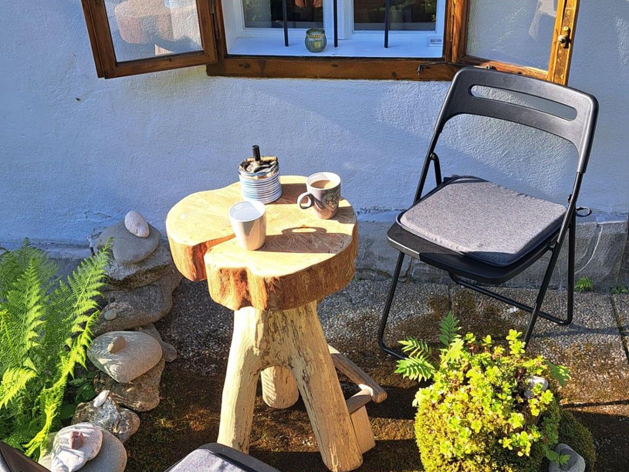 Im historischen Hausstock des Forsthäuschens befindet sich die neue Ferienwohnung mit separatem Eingang. Wenige Schritte von der Wohnung gelangt man auf die kleine Terrasse. Hier könnt ihr den Tag wunderbar mit Vogelgezwitscher und sanftem Bachplätschern starten.