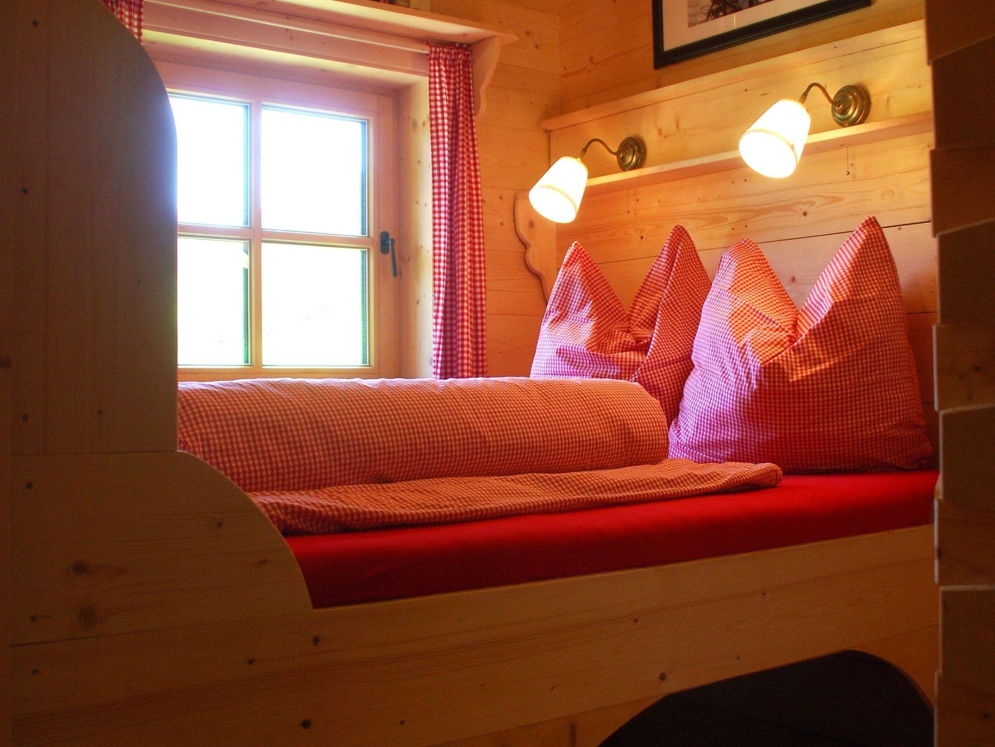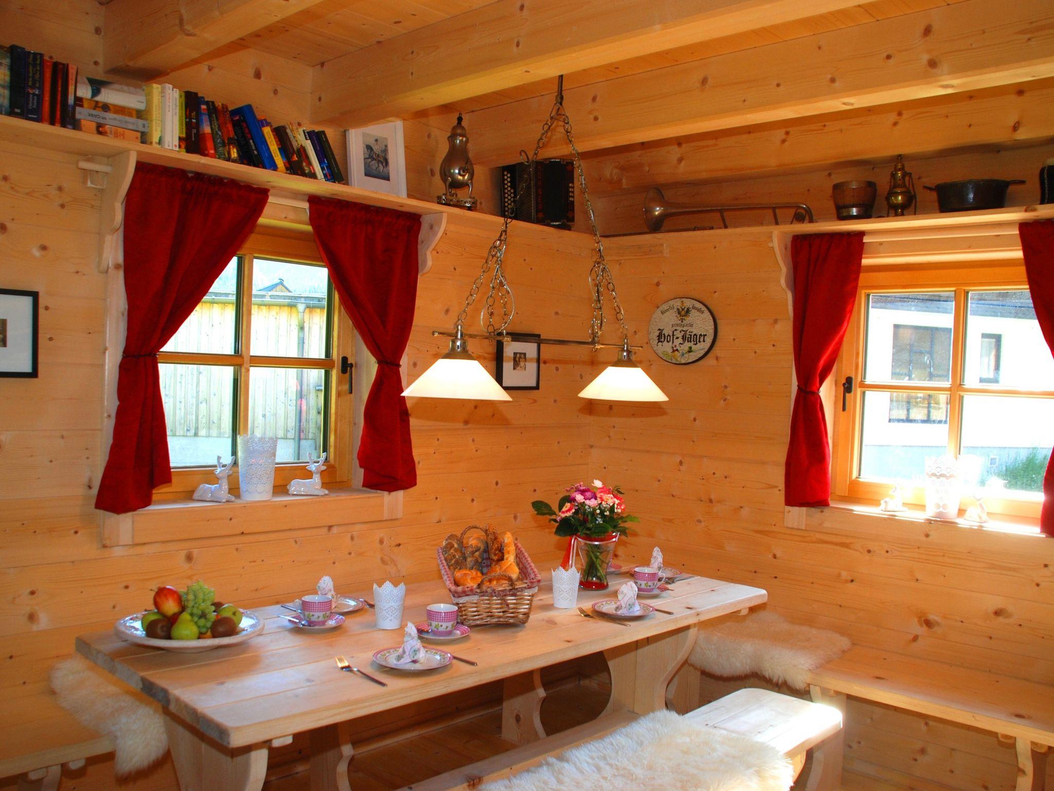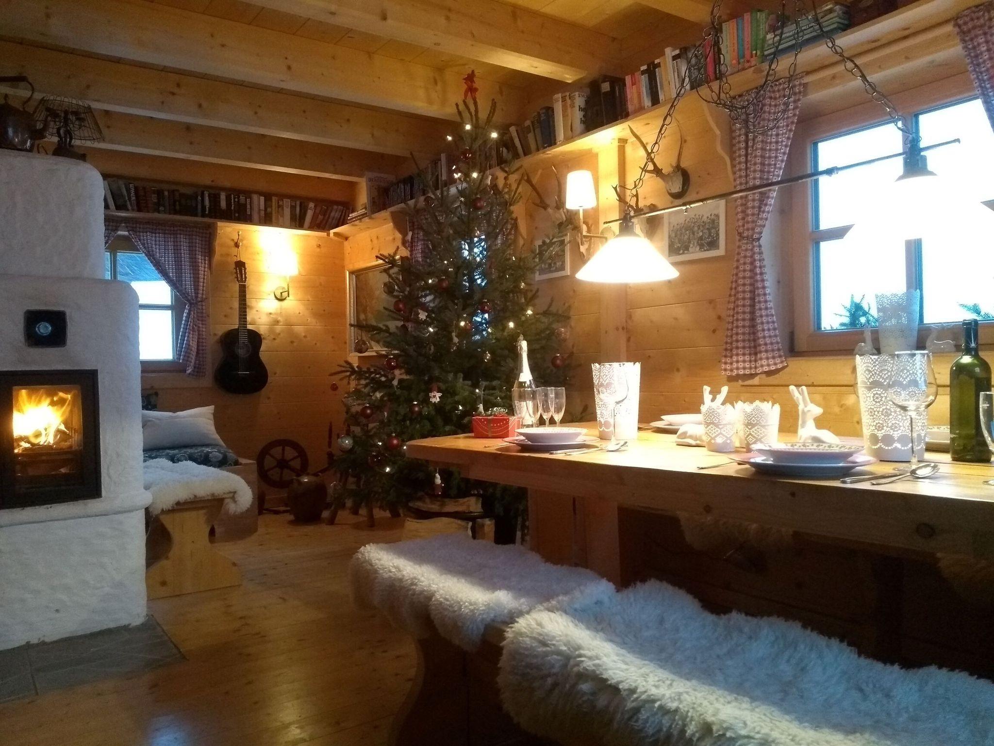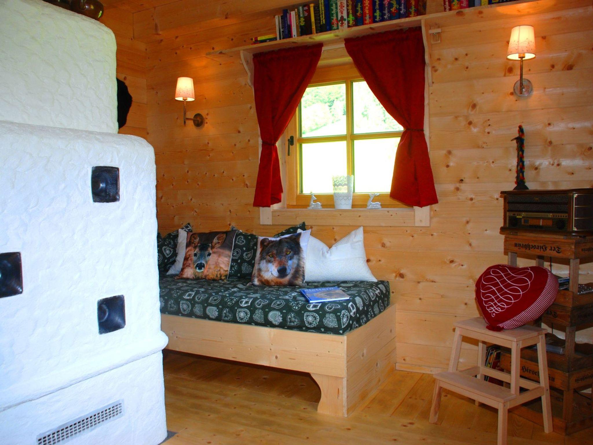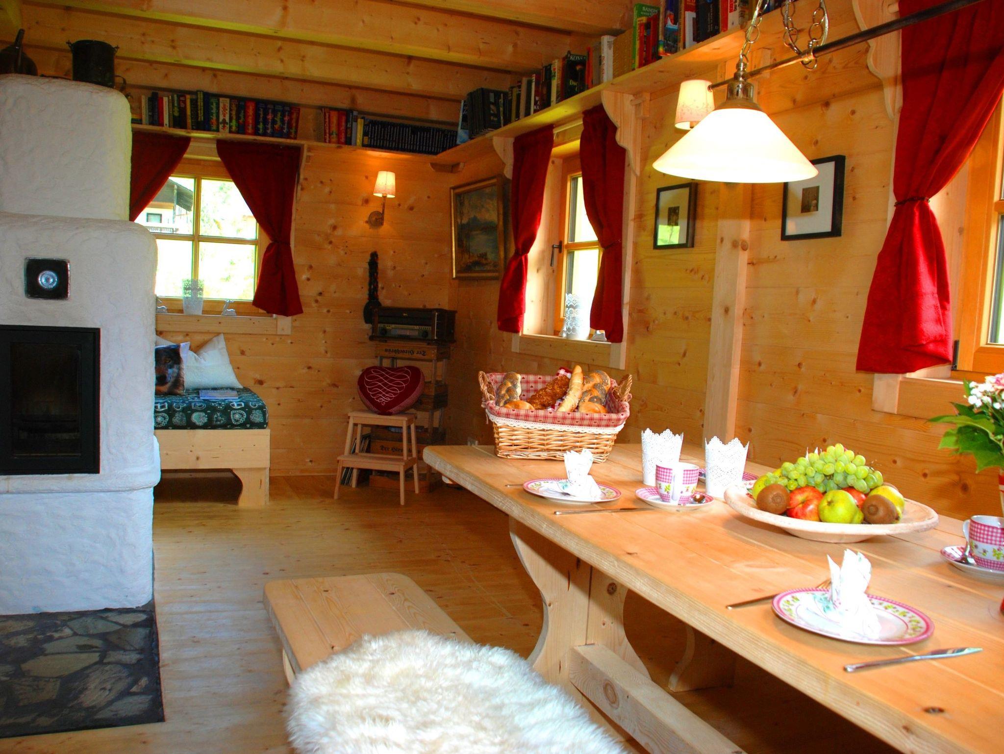 Das Ferienhaus mit traditioneller Holzofen, Holzkamin und alte Bauernmöbel vermittelt ein authentisches Alpenflair, auf moderne Küchentechnik wird trotzdem nicht verzichtet. In der Hütte befinden sich zwei komfortable Badezimmer mit Wellness- Dusche, Badewanne und Sauna, die keine Wünsche offenlassen. Drei Schlafzimmer mit je einem Doppelbett bieten genügend Raum für bis zu 6 Erwachsenen und einem Kleinkind (unter 2 Jahre im Zustellbettchen). Die Küche ist ausgestattet mit einem urigen Holzofen mit Backrohr jedoch auch ein elektrokochherd und Ofen, Kaffeemaschine, Toaster, Heißwasserkocher, Spülmaschine und einem Retrokühlschrank.