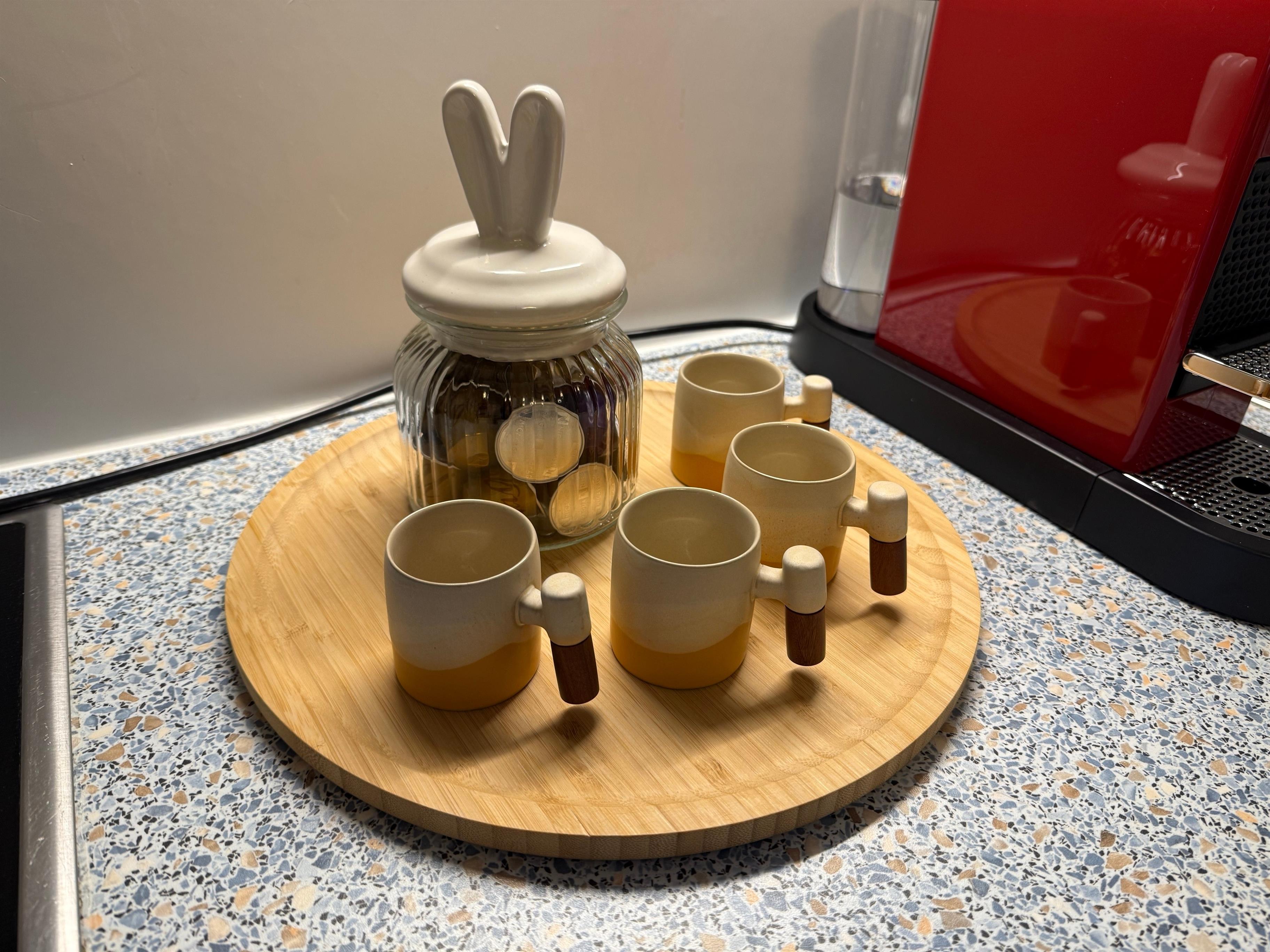 Komfortausstattung Kochen (Töpfe, Bratpfanne, Salz, Pfeffer und Öl)