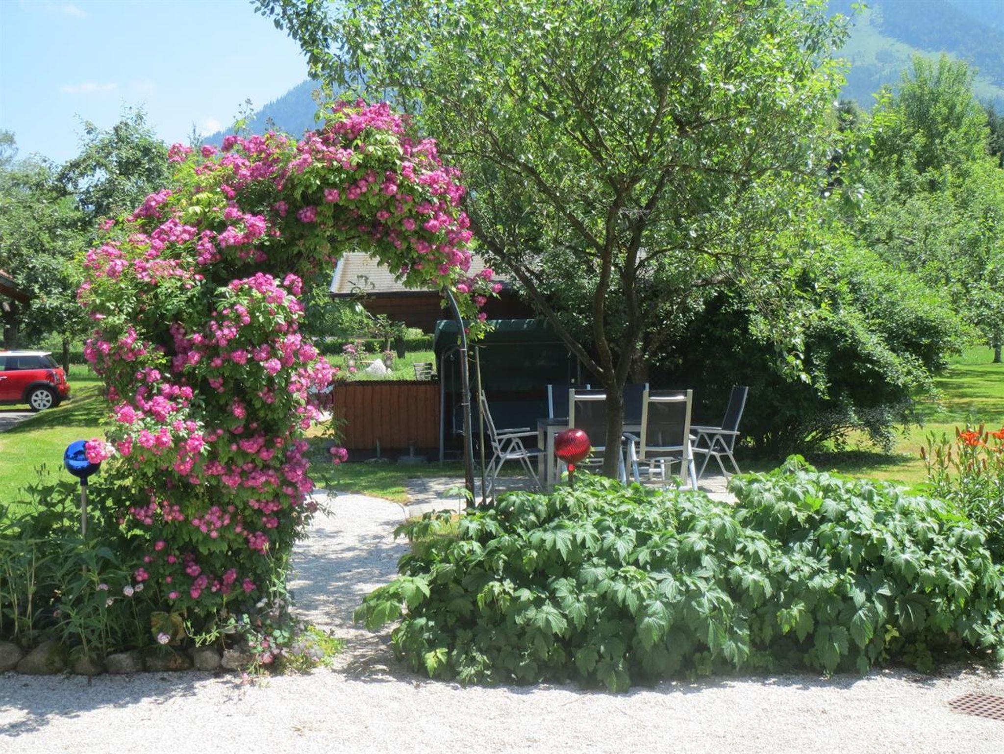 Ferienwohnung mit Schlafzimmer, Wohnzimmer, Küche mit Geschirrspüler, Micro, Backofen, Wasserkocher, Toaster, Filterkaffemaschine, Kabel-TV 2x, Bad und WC, WLAN, Vorraum, Fön, Kosmetikspiegel, Balkon mit traumhafter Aussicht auf die Berge und natürlich Benutzung unseres großen Gartens. Bettwäsche und Handtücher sind genügend vorhanden.