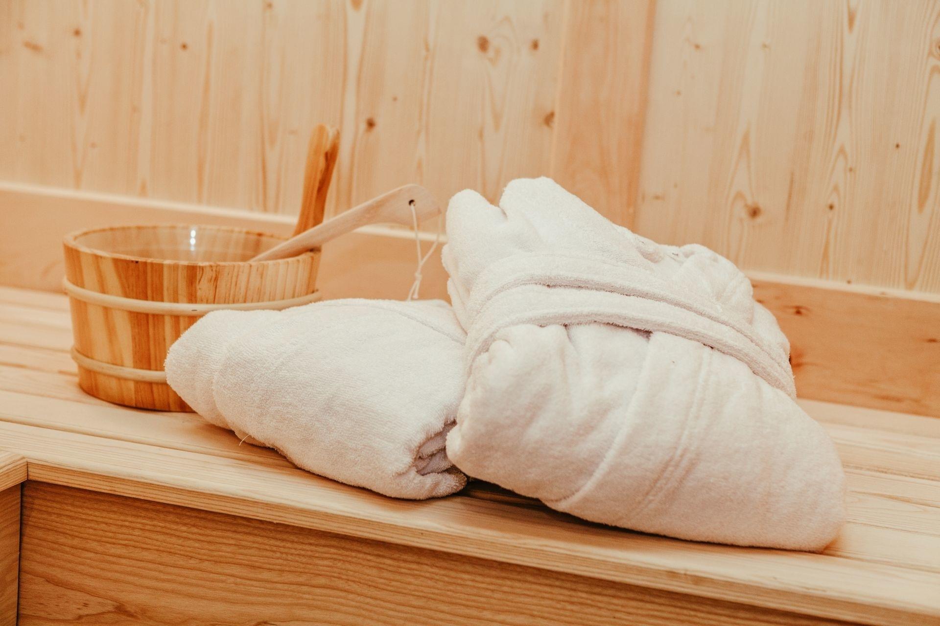 Badezimmer gelangen Sie direkt in die Zirbenholzsauna.