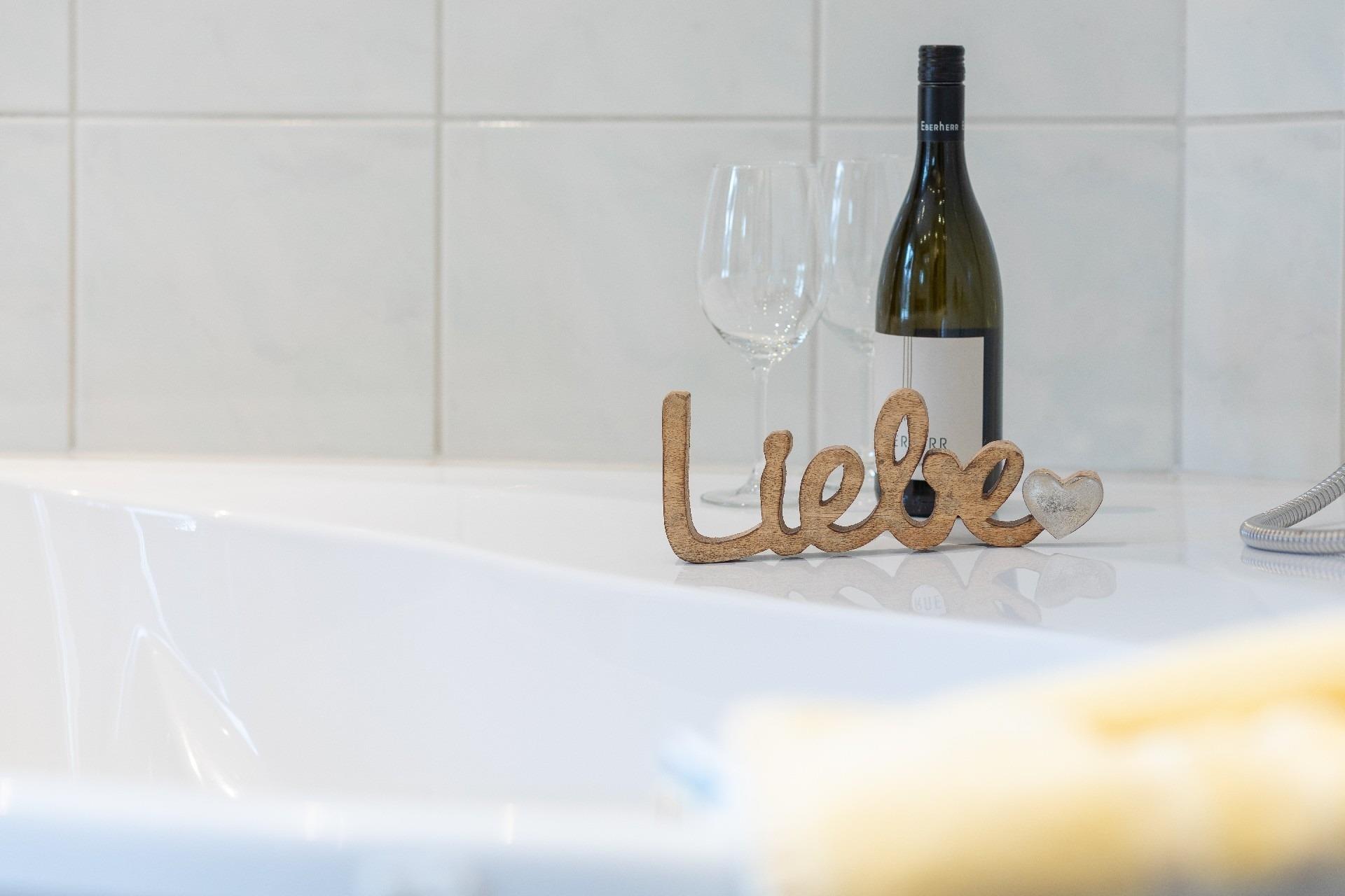 mit eigenem Badezimmer/WC (24qm) mit Badwanne, Doppelwaschbecken und einer barrierefreien Dusche. Aus dem