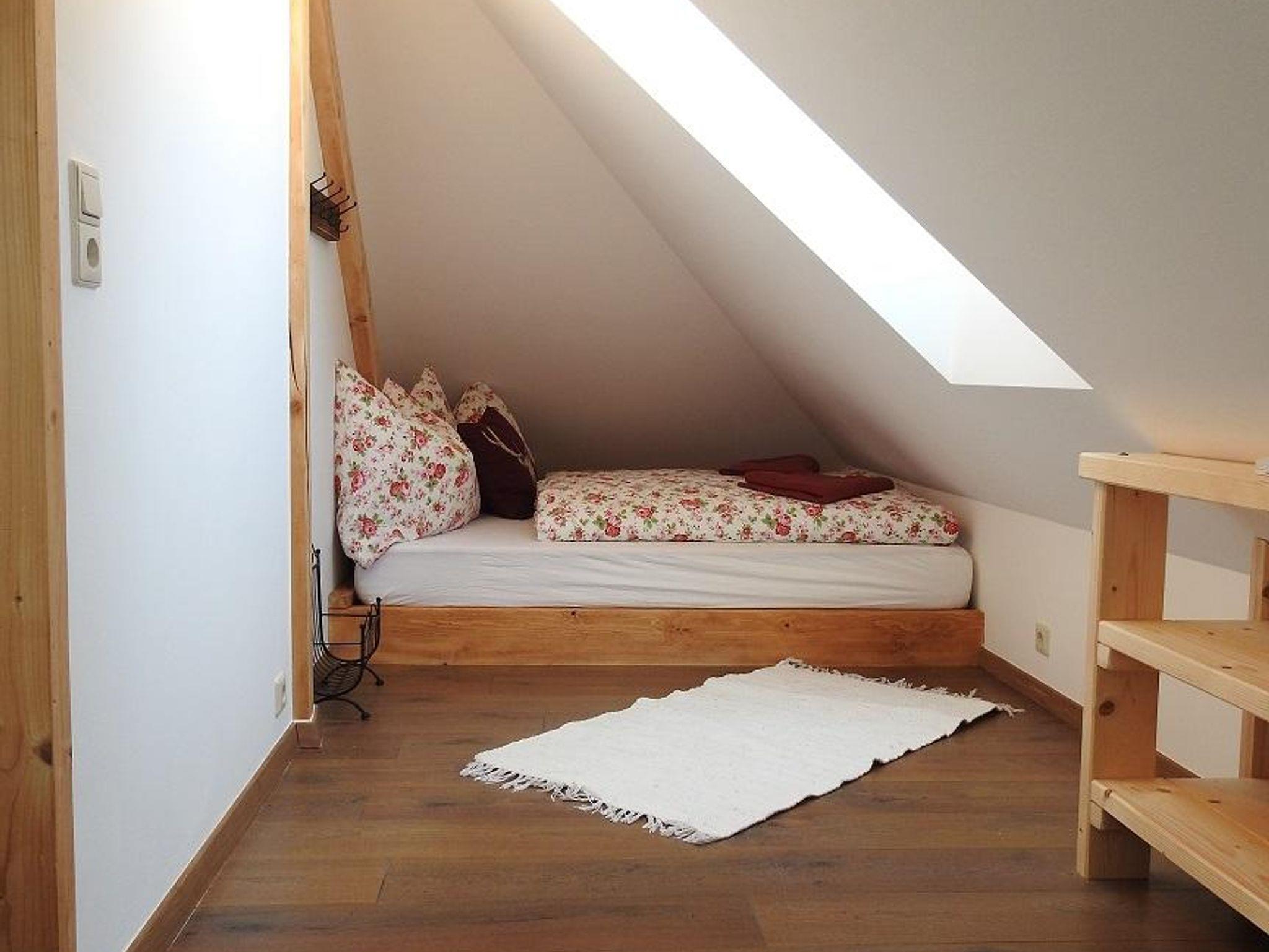 Die gemütliche Dachgeschosswohnung für bis zu vier Personen ist ausgestattet mit TV, WLAN, Kaffeemaschine, Föhn und einer kleinen Küche und bietet somit Komfort für Familien und Paare.