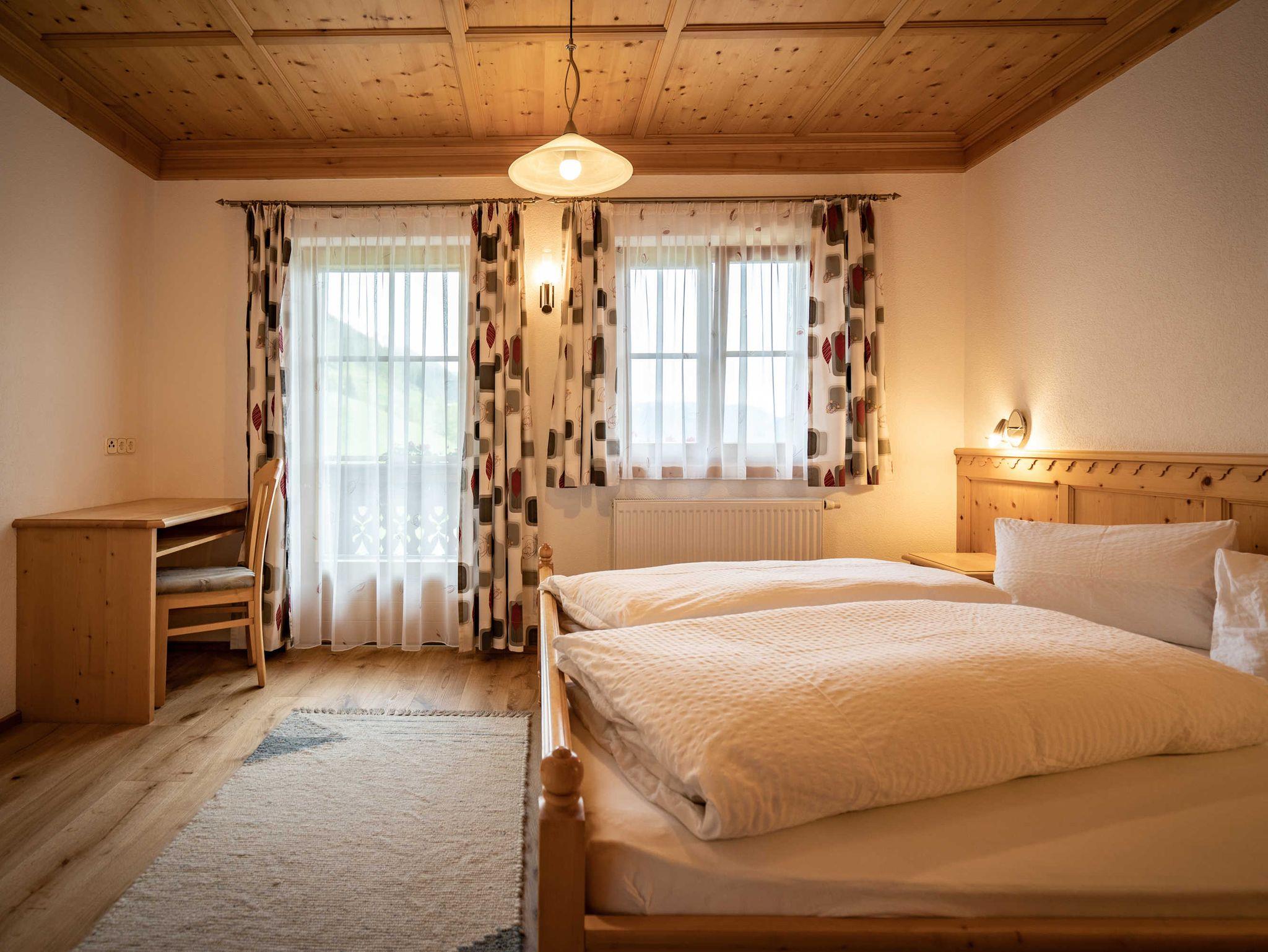 Unsere komfortabel ausgestattete Ferienwohnung Dorfblick befindet sich im 2. Stock unseres Bauernhauses und ist mit viel Holz aus heimischer Fichte im Villgrater Baustil liebevoll eingerichtet worden.